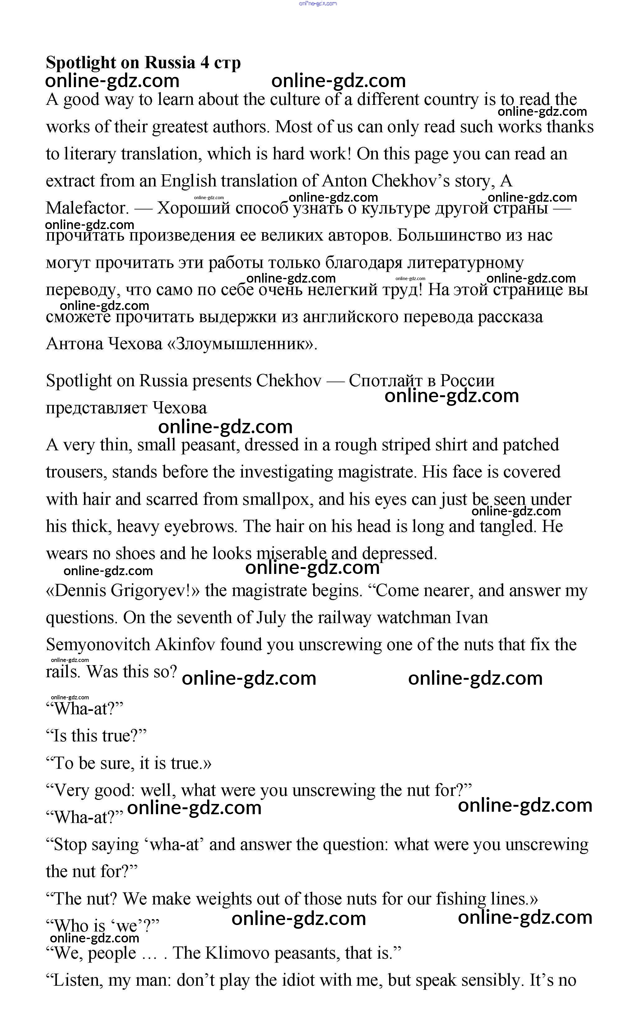 Готовые домашние задания по Английскому языку за 7 класс Учебник Ваулина, Дули Spotlight 2019 - Spotlight on Russia 4