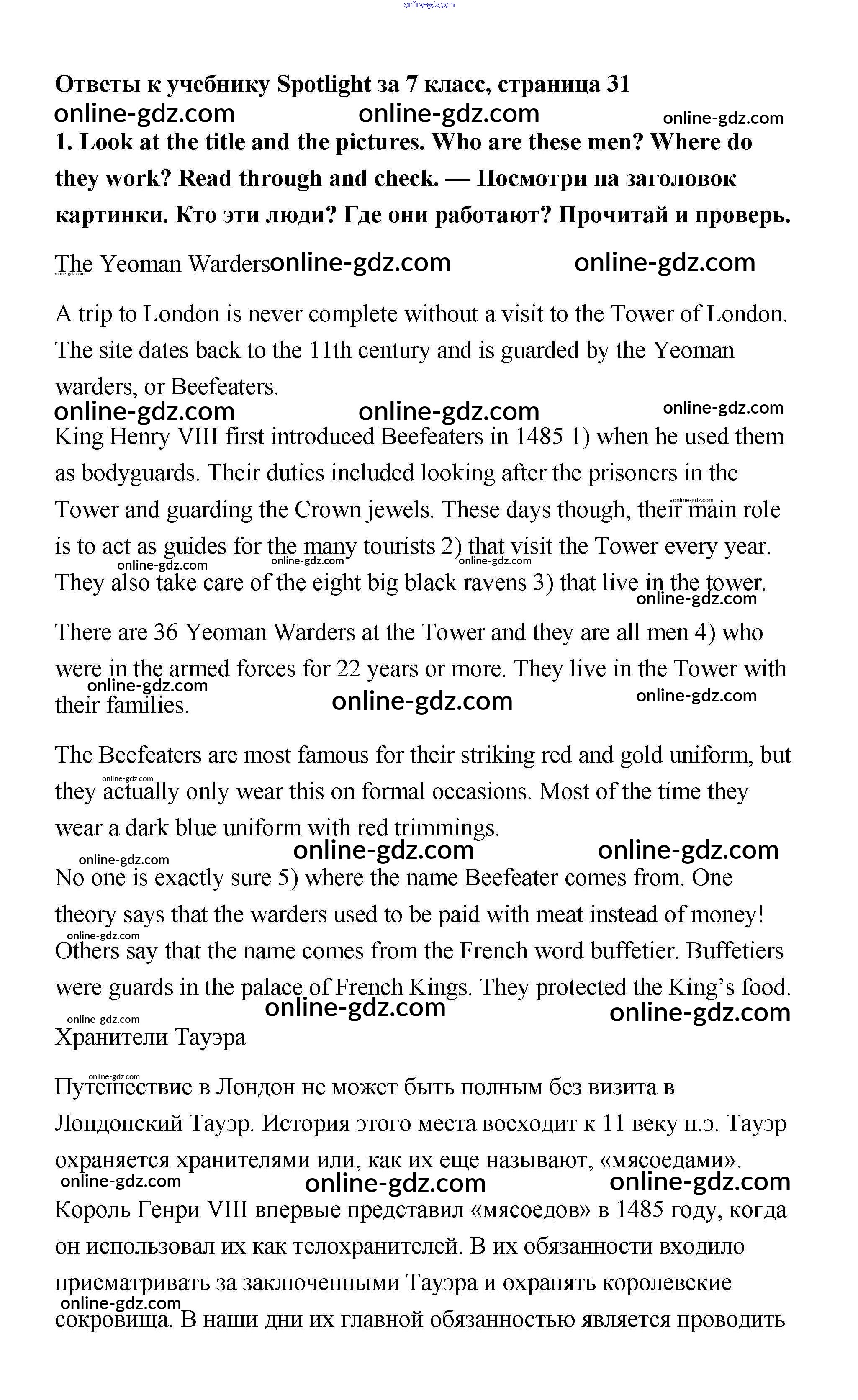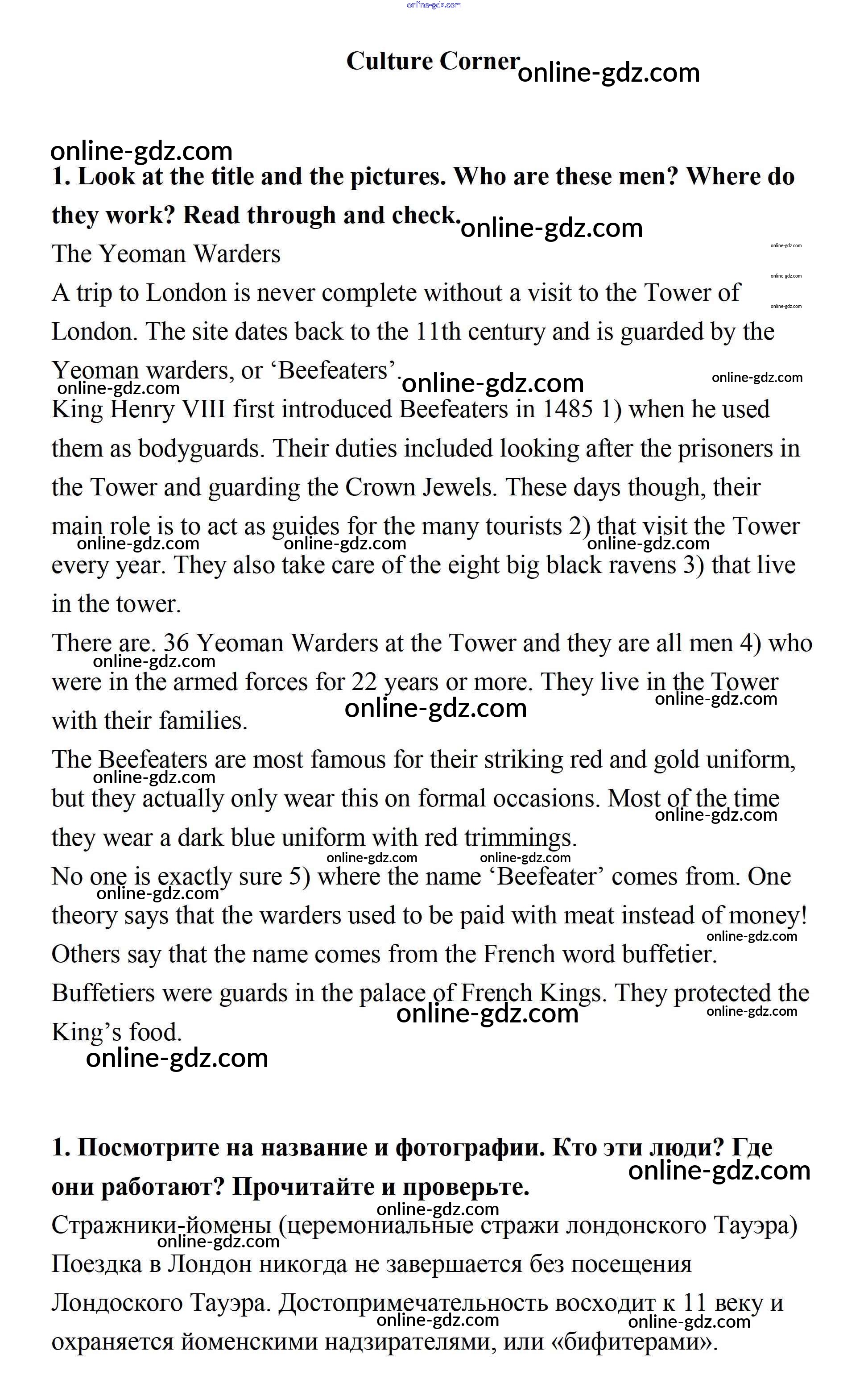 Готовые домашние задания по Английскому языку за 7 класс Учебник Ваулина, Дули Spotlight 2019 - Часть 3d. Culture Corner Модуль 3 1