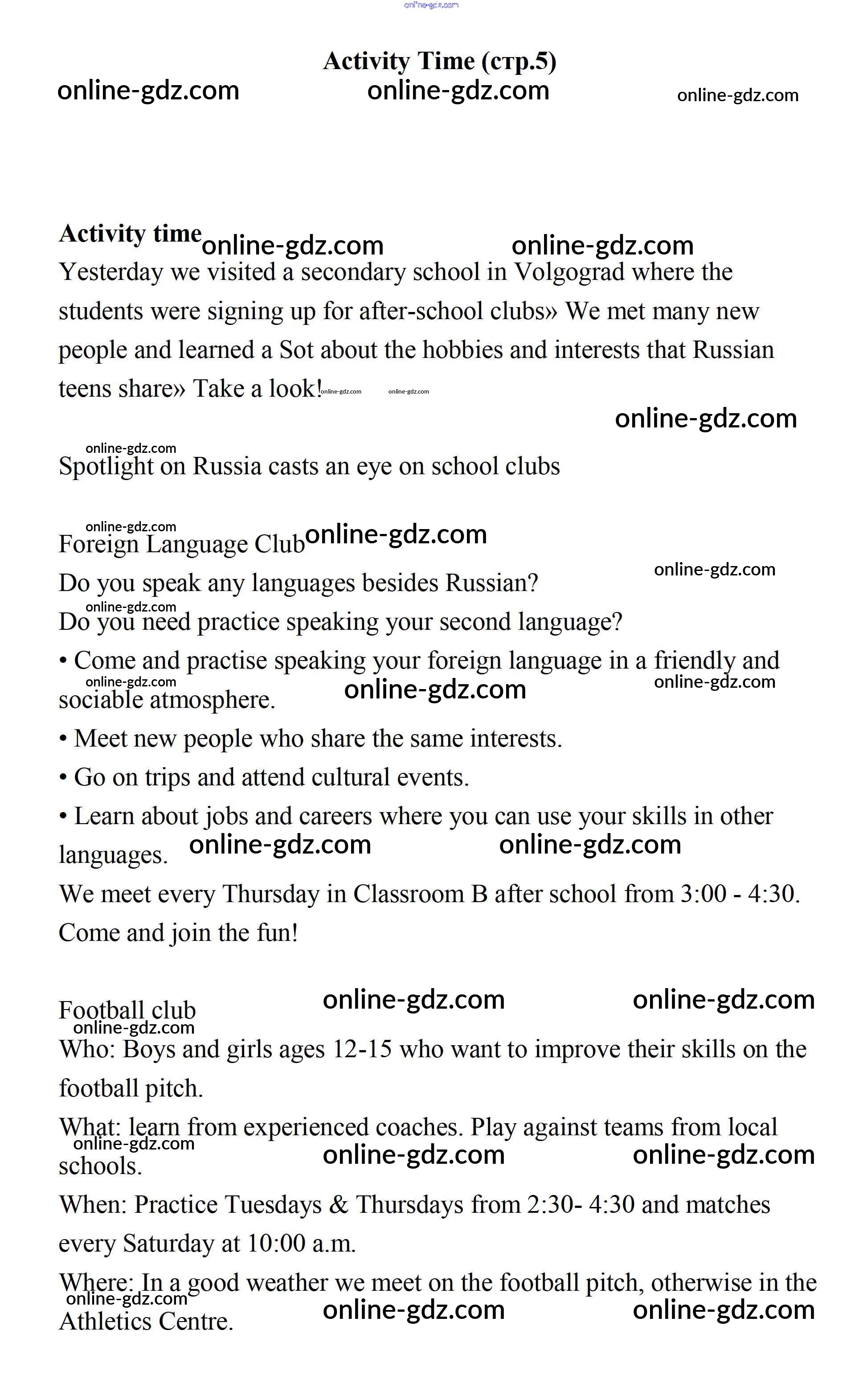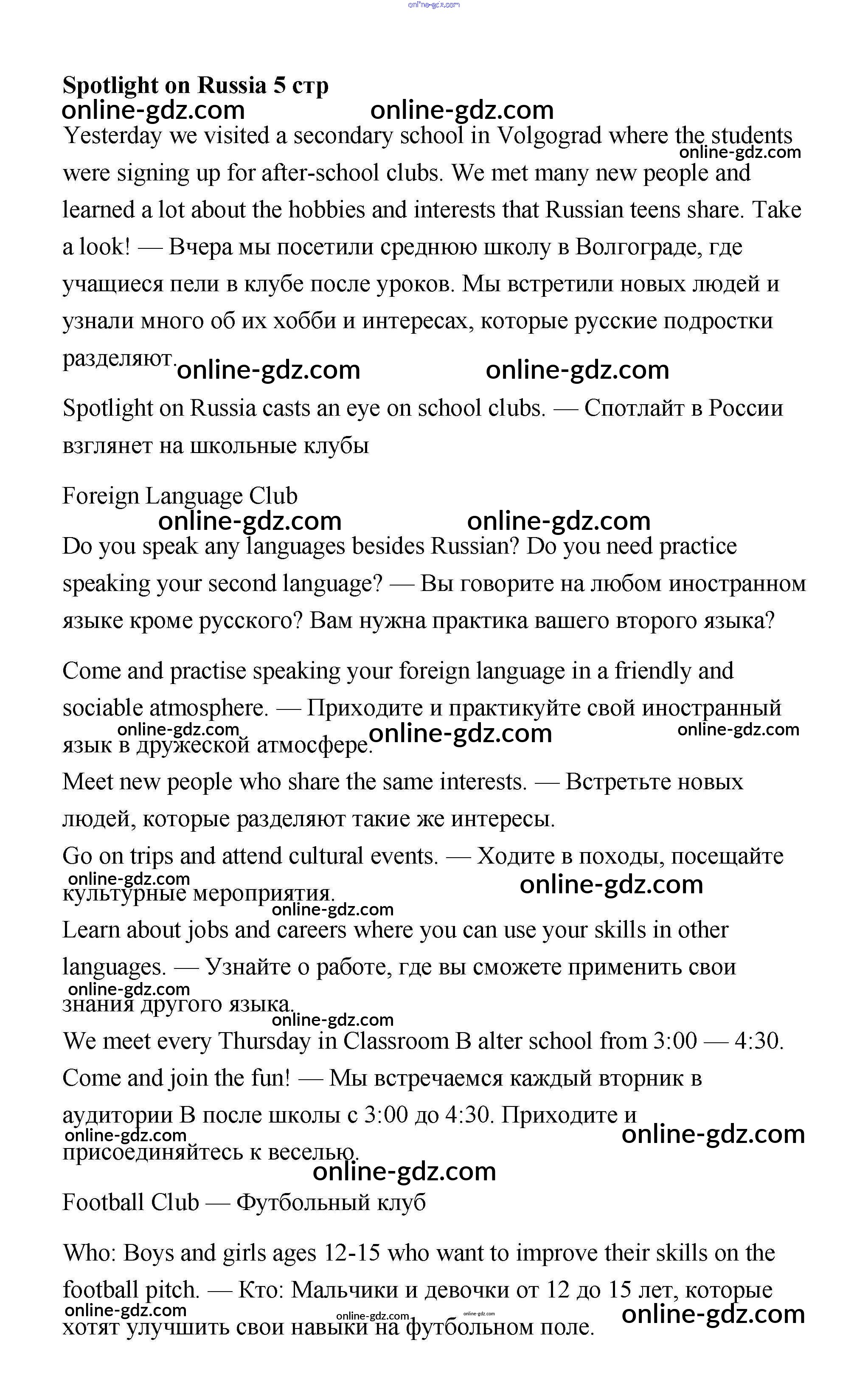 Готовые домашние задания по Английскому языку за 7 класс Учебник Ваулина, Дули Spotlight 2019 - Spotlight on Russia 5