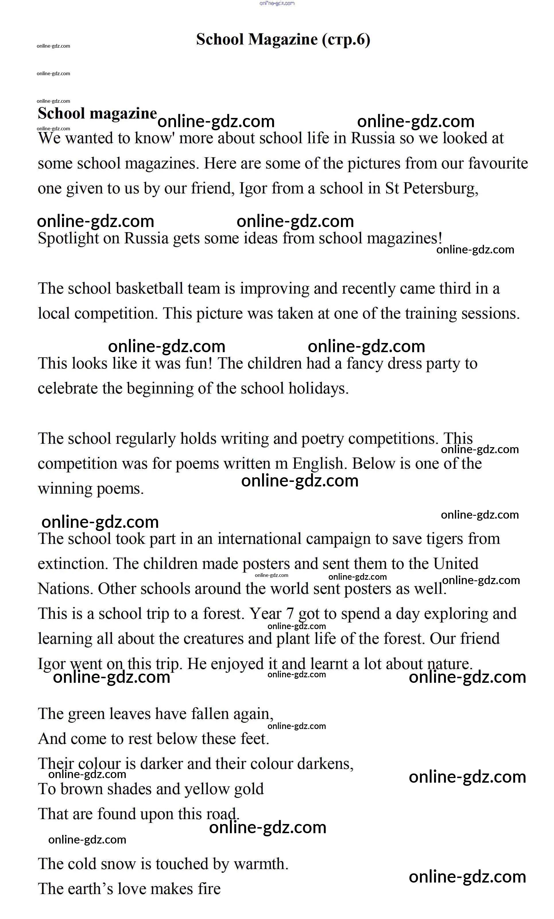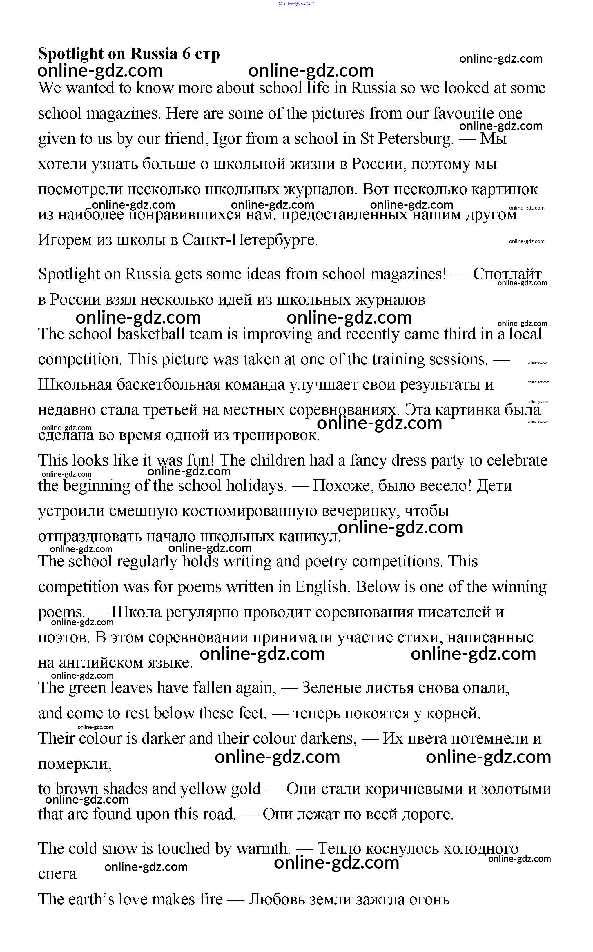 Готовые домашние задания по Английскому языку за 7 класс Учебник Ваулина, Дули Spotlight 2019 - Spotlight on Russia 6