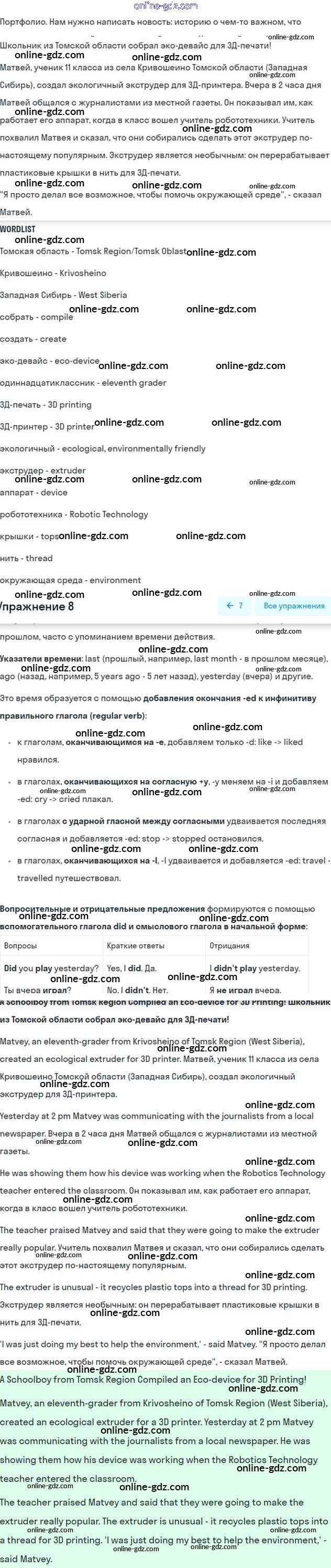Готовые домашние задания по Английскому языку за 7 класс Учебник Ваулина, Дули Spotlight 2019 - Часть 4a Модуль 4 8