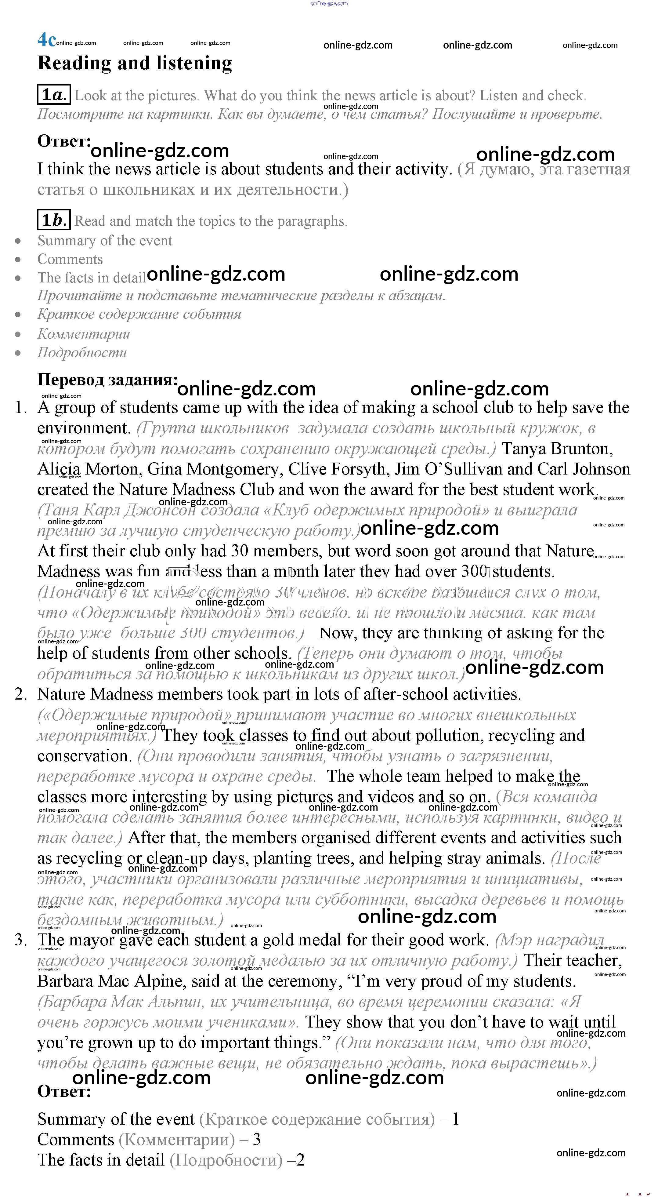 Готовые домашние задания по Английскому языку за 7 класс Учебник Ваулина, Дули Spotlight 2019 - Часть 4c Модуль 4 1