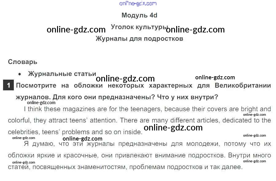 Готовые домашние задания по Английскому языку за 7 класс Учебник Ваулина, Дули Spotlight 2019 - Часть 4d. Culture Corner Модуль 4 2