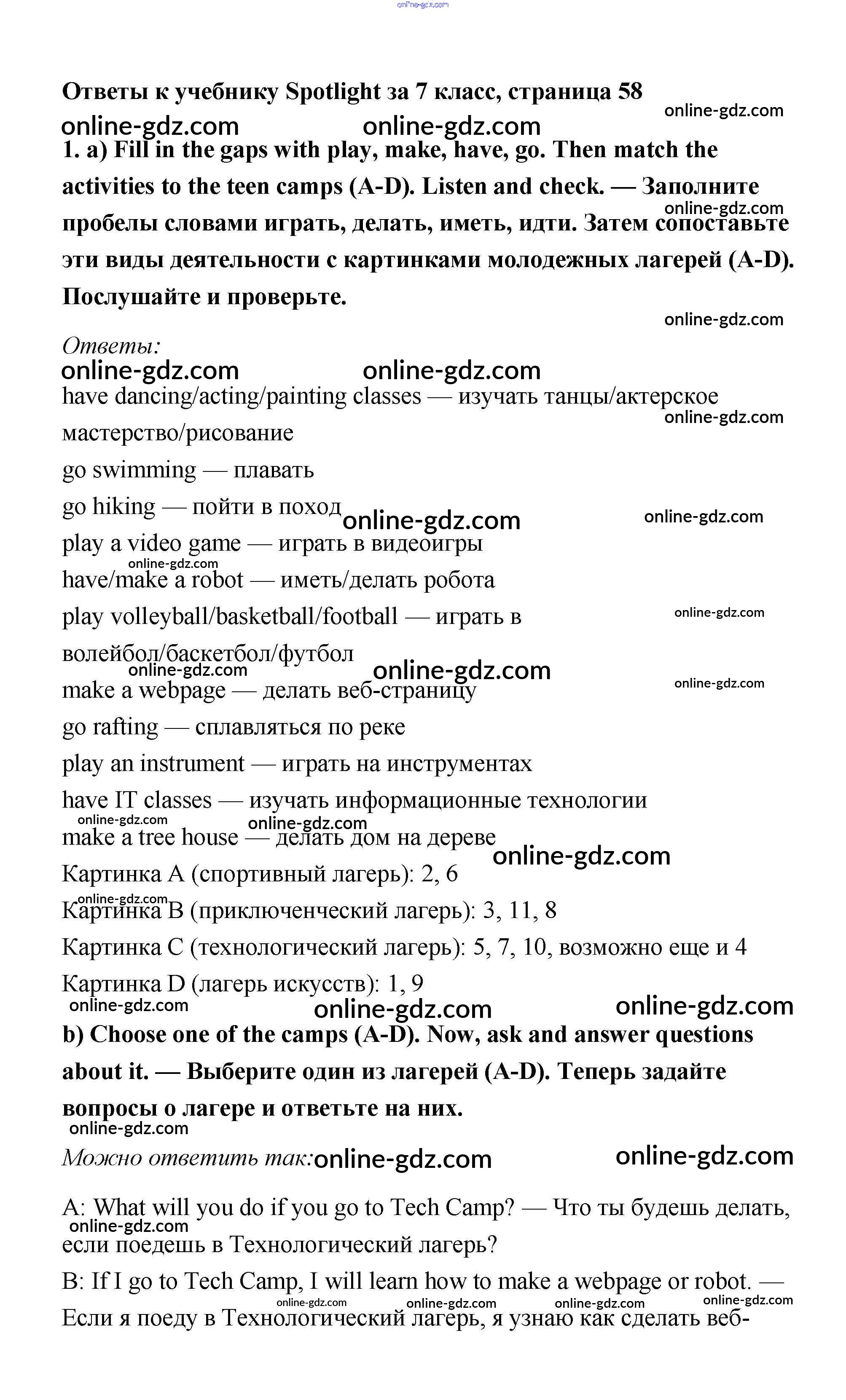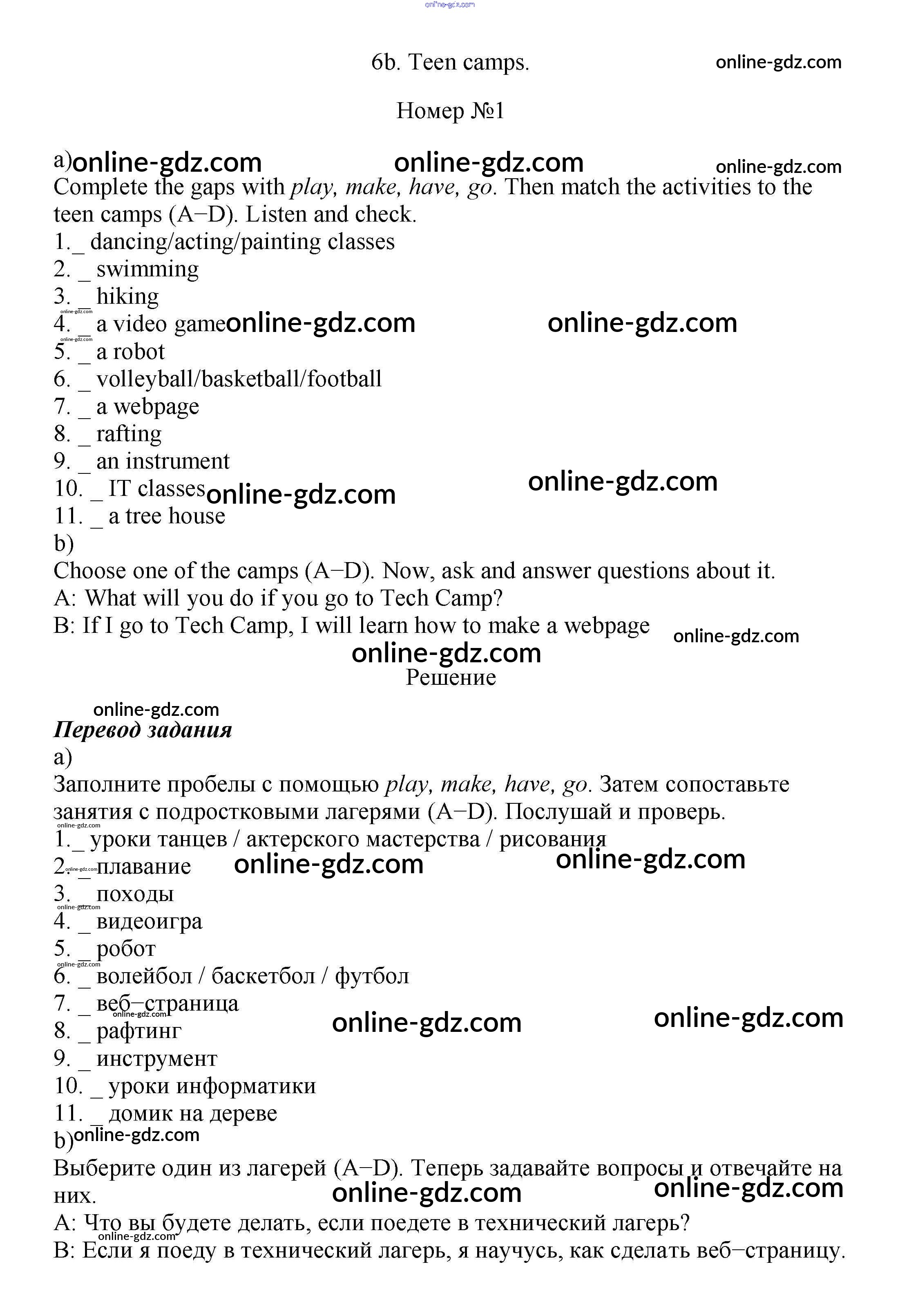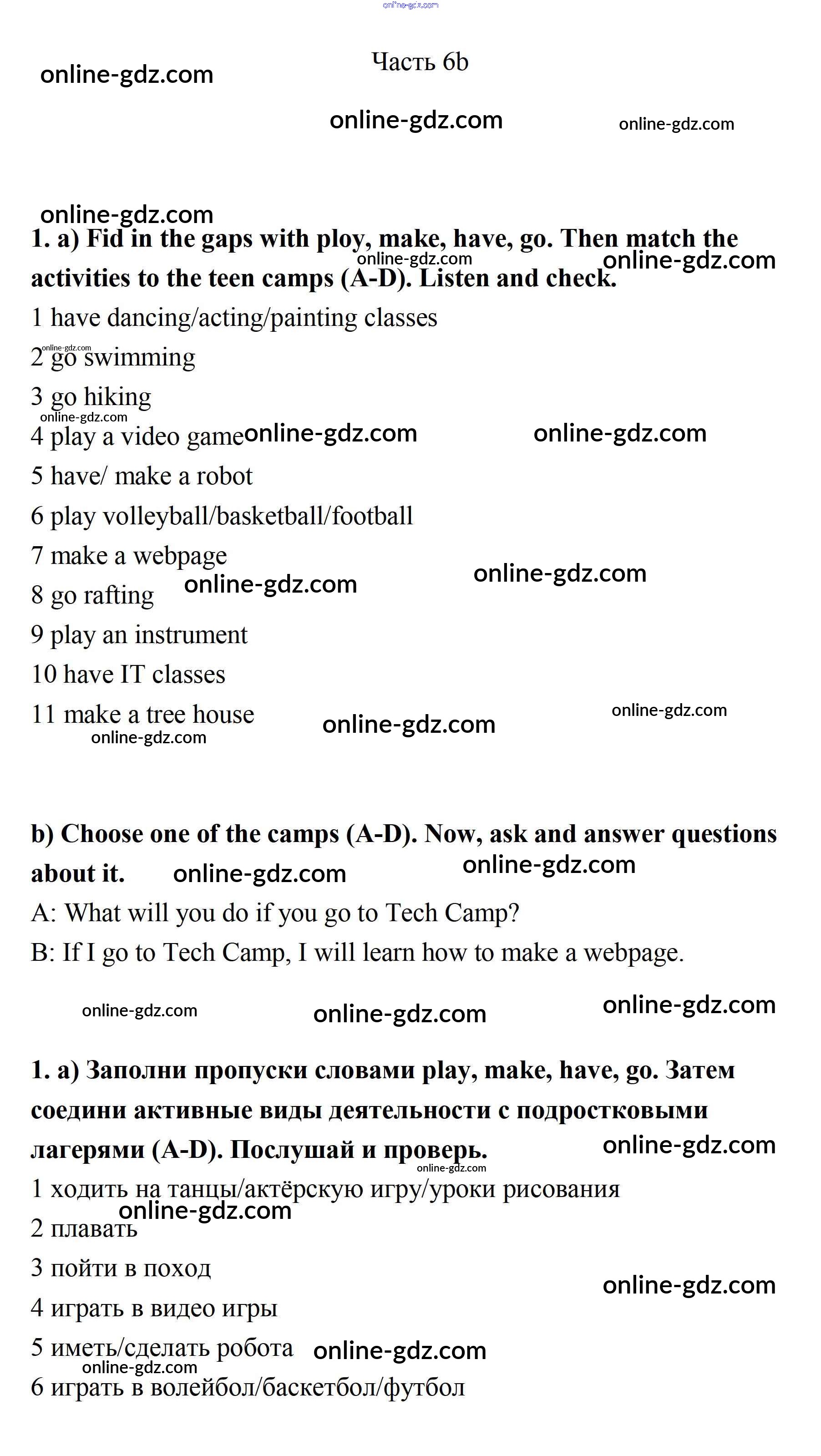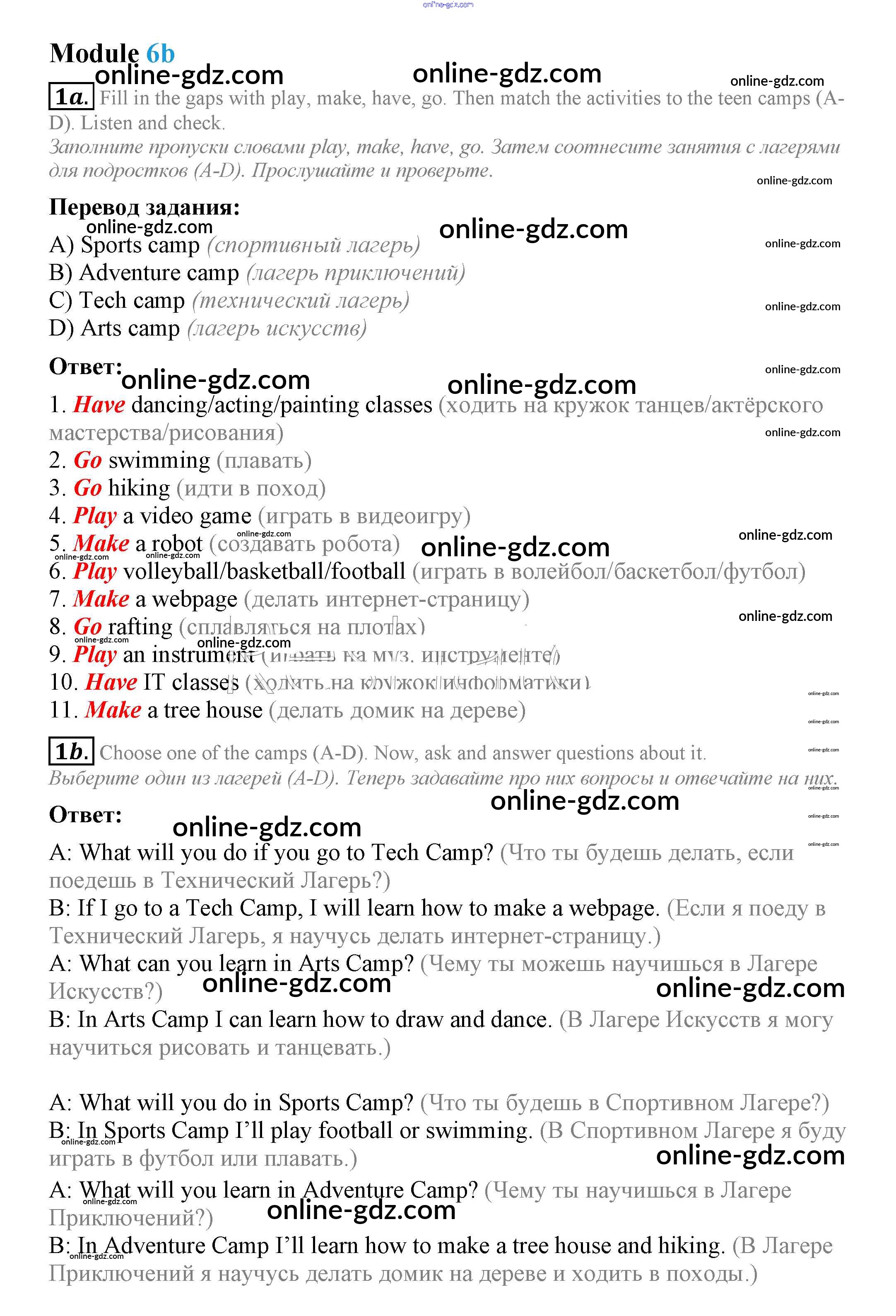 Готовые домашние задания по Английскому языку за 7 класс Учебник Ваулина, Дули Spotlight 2019 - Часть 6b Модуль 6 1