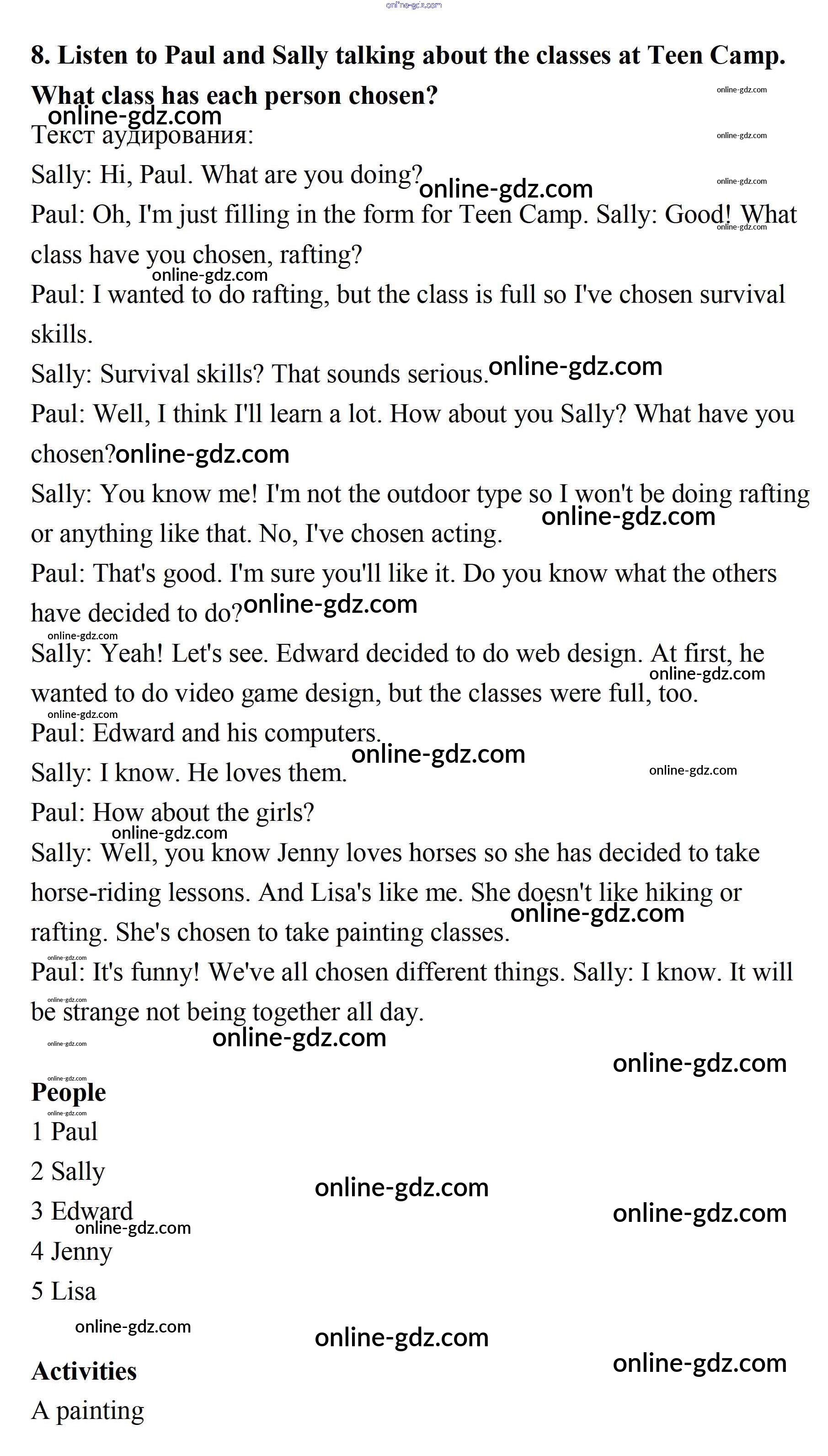 Готовые домашние задания по Английскому языку за 7 класс Учебник Ваулина, Дули Spotlight 2019 - Часть 6b Модуль 6 8