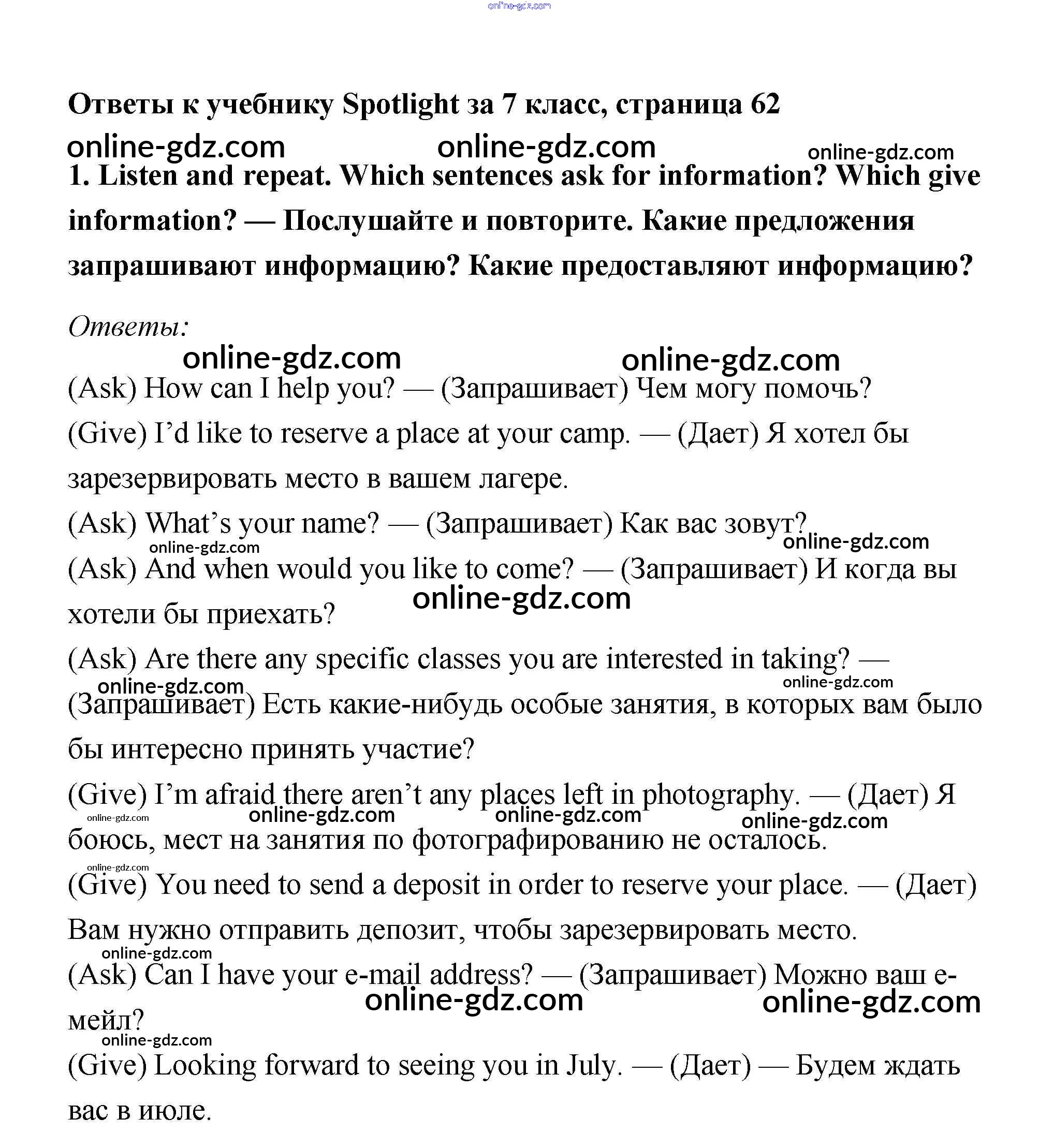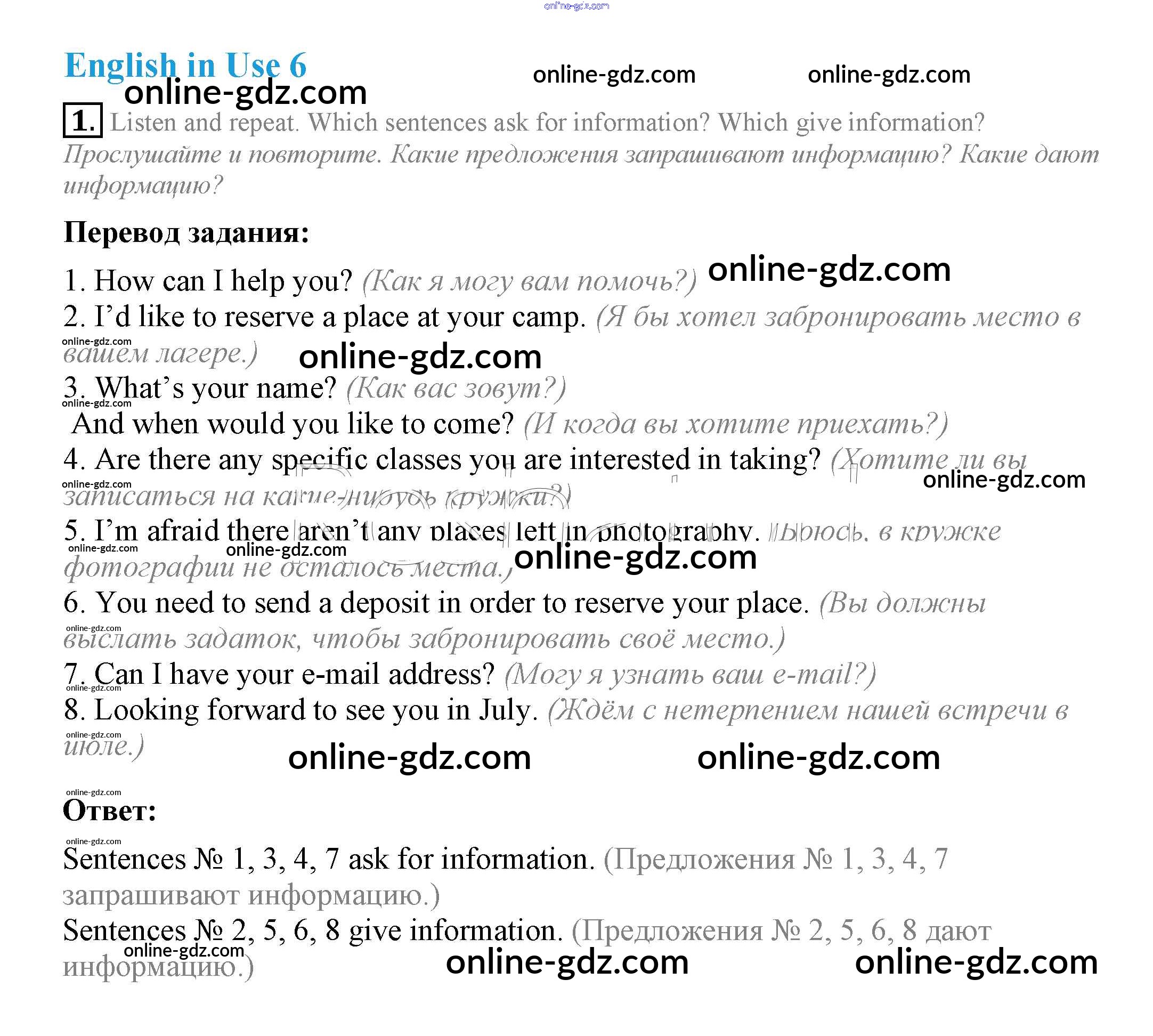 Готовые домашние задания по Английскому языку за 7 класс Учебник Ваулина, Дули Spotlight 2019 - English in use Модуль 6 1