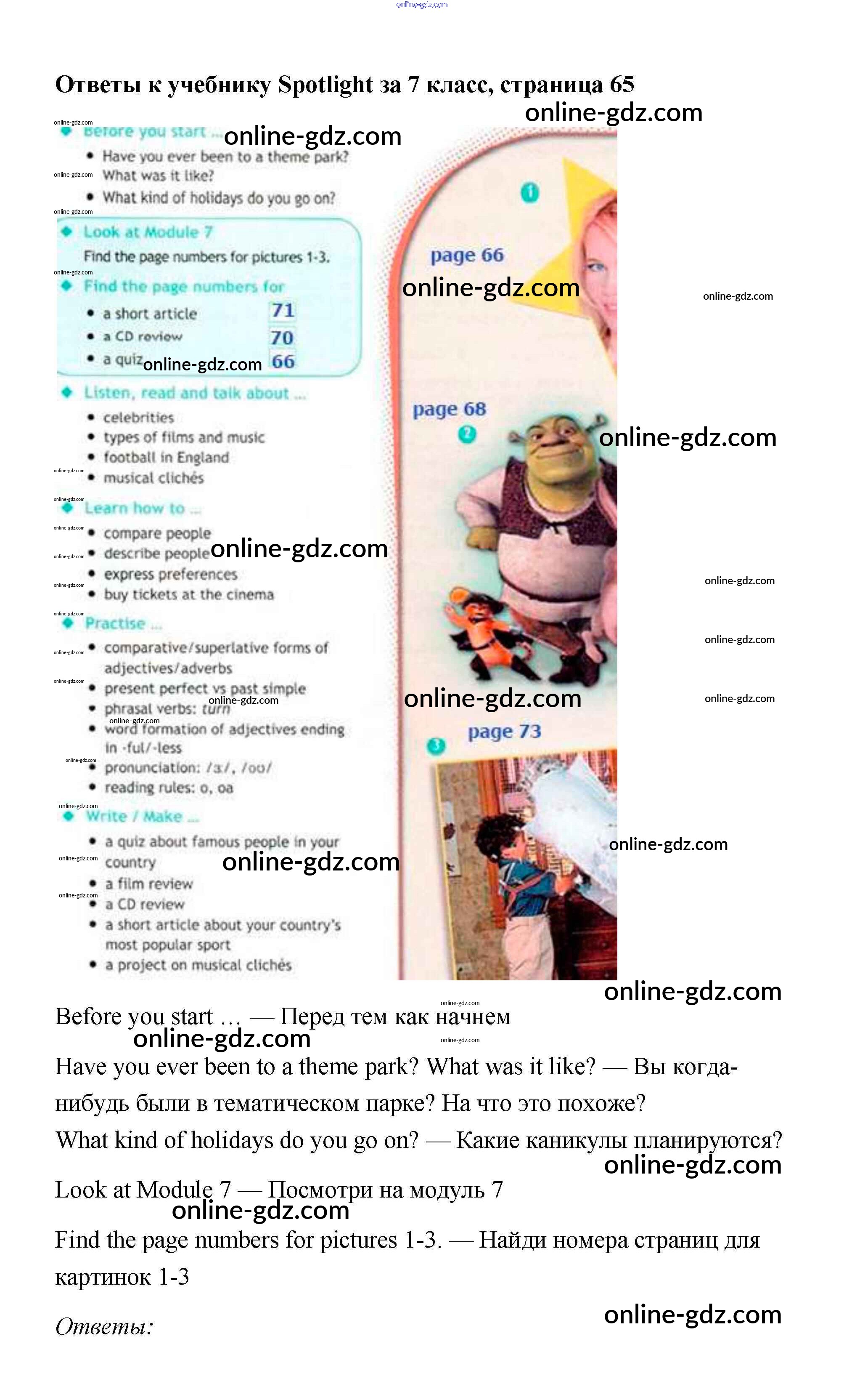 Готовые домашние задания по Английскому языку за 7 класс Учебник Ваулина, Дули Spotlight 2019 - Часть 7a Модуль 7 1