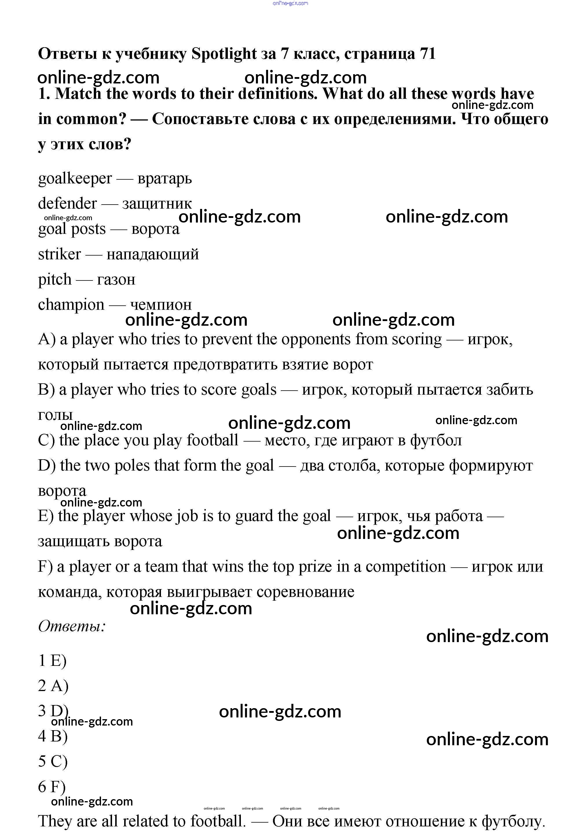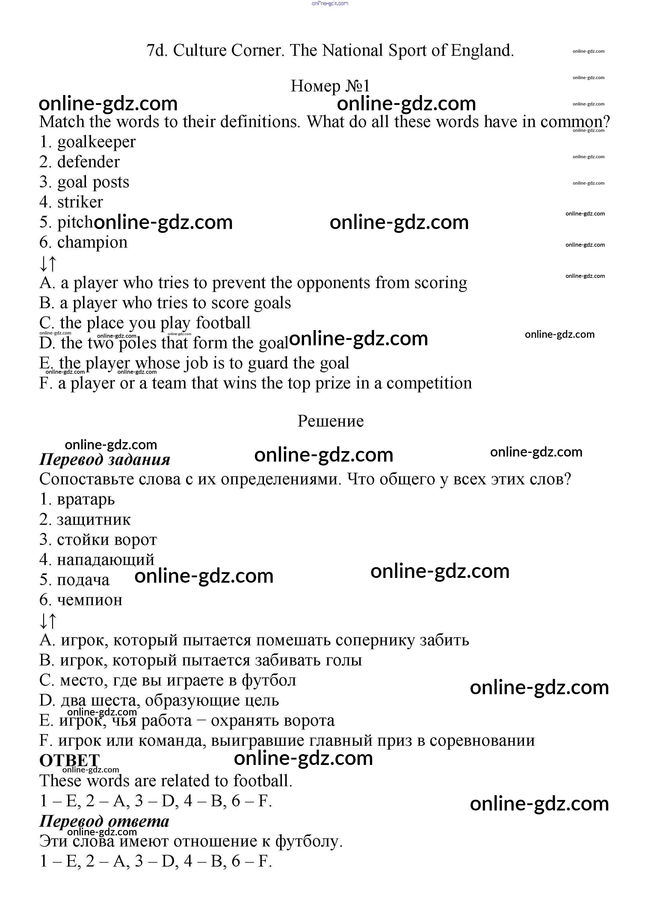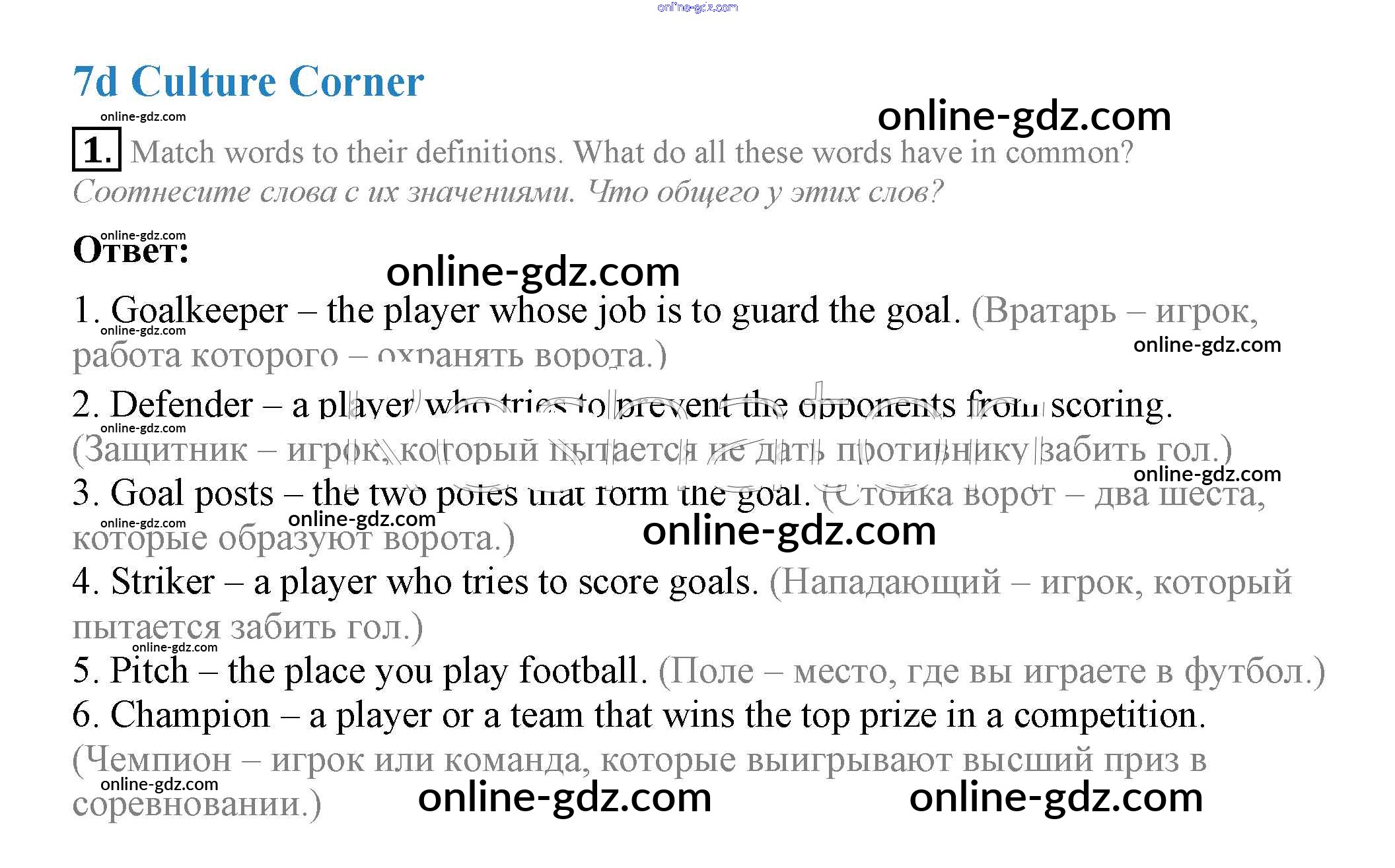 Готовые домашние задания по Английскому языку за 7 класс Учебник Ваулина, Дули Spotlight 2019 - Часть 7d. Culture Corner Модуль 7 1