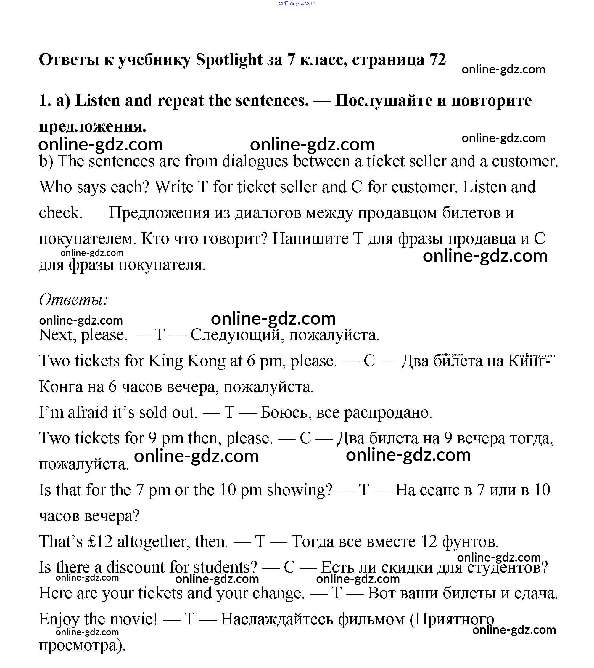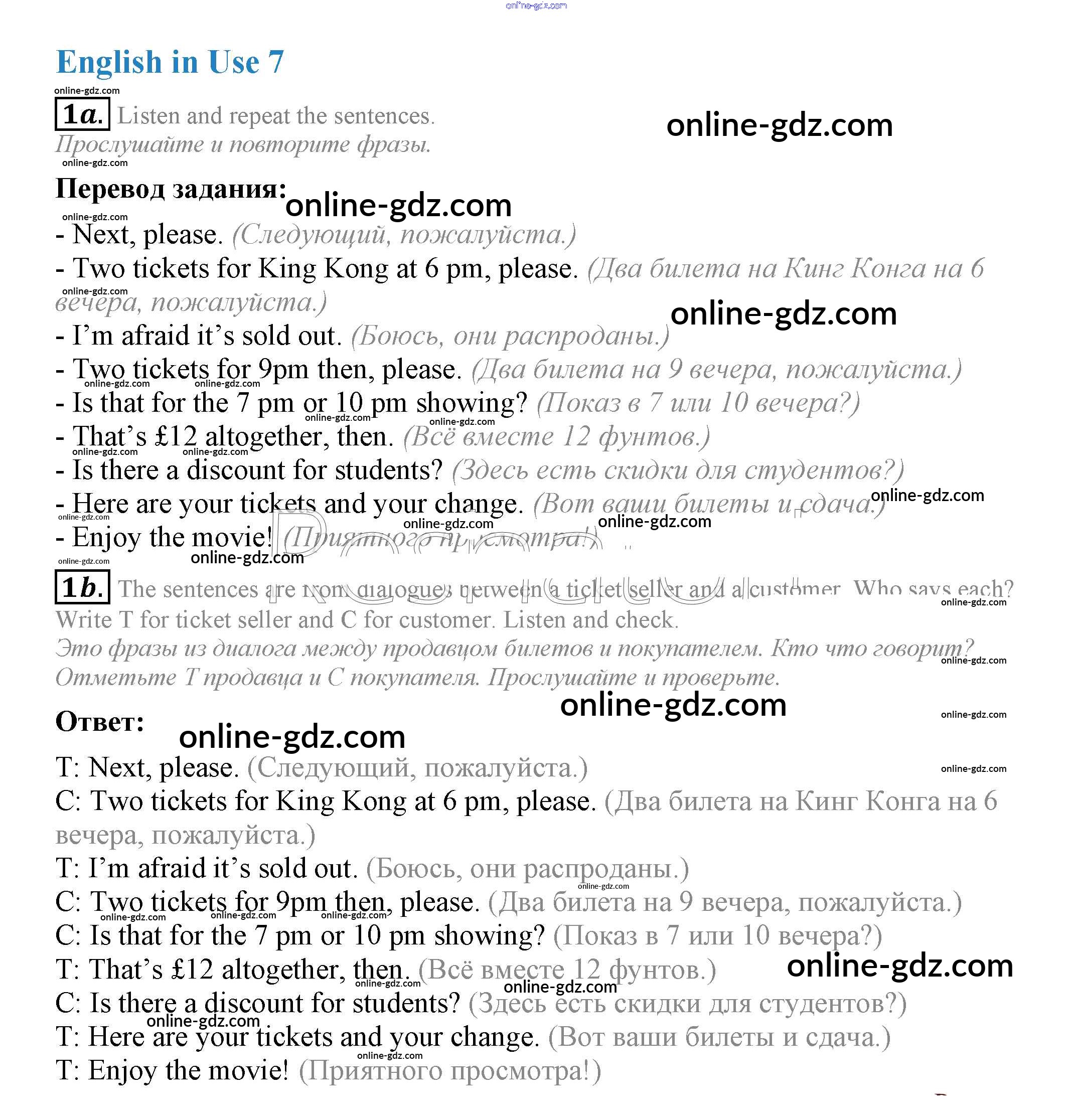 Готовые домашние задания по Английскому языку за 7 класс Учебник Ваулина, Дули Spotlight 2019 - English in use Модуль 7 1