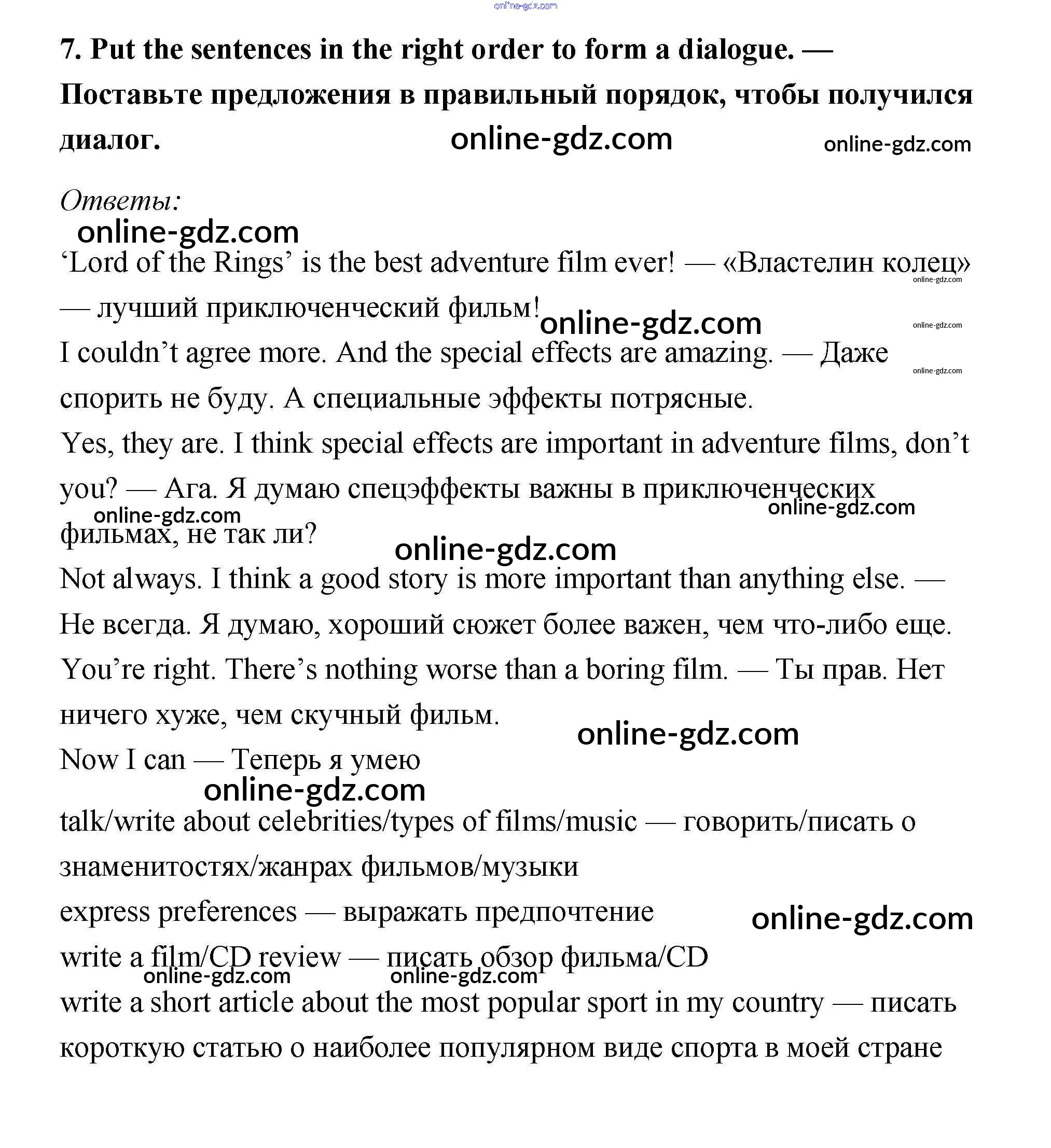 Готовые домашние задания по Английскому языку за 7 класс Учебник Ваулина, Дули Spotlight 2019 - Progress Check Модуль 7 7