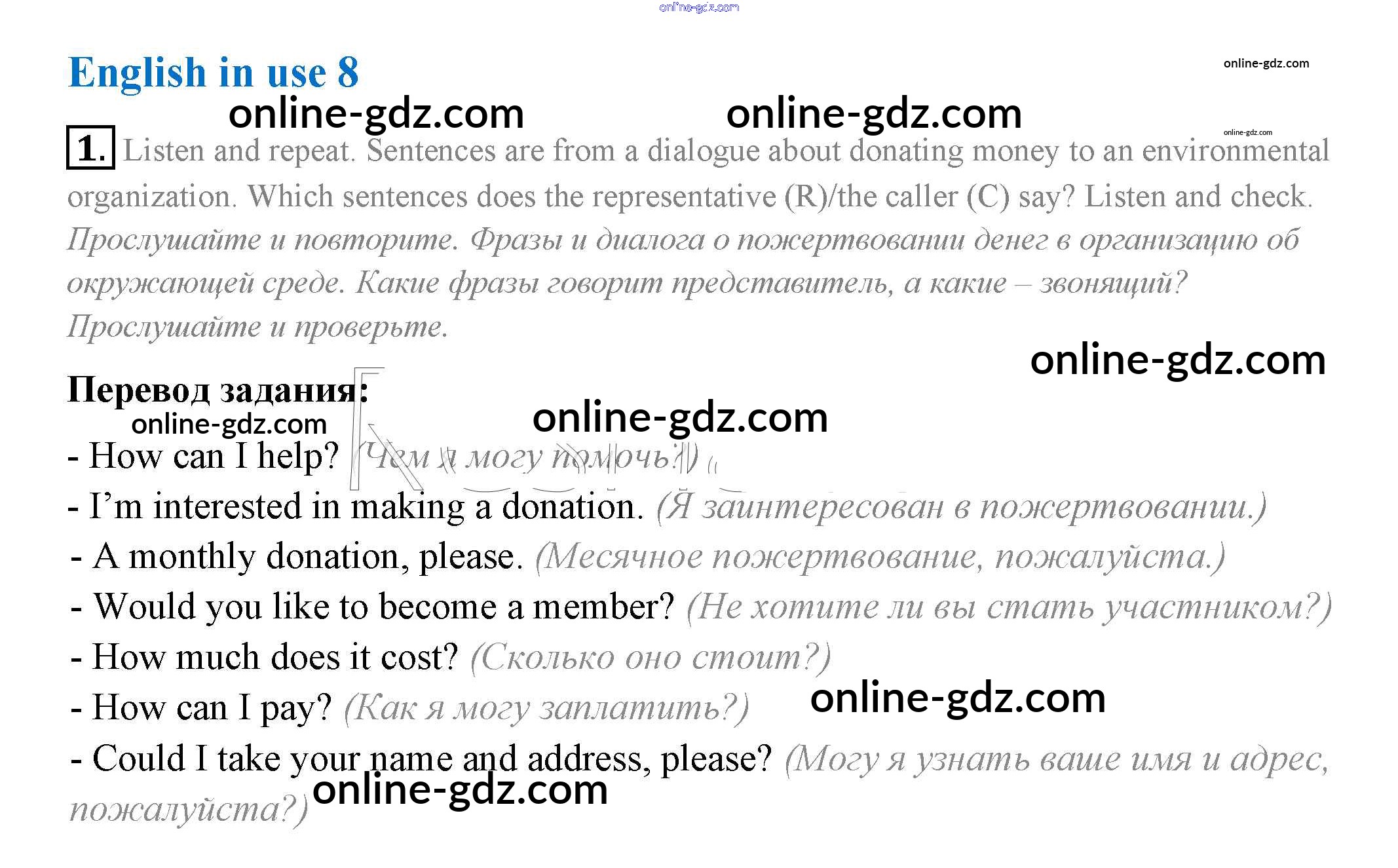 Готовые домашние задания по Английскому языку за 7 класс Учебник Ваулина, Дули Spotlight 2019 - English in use Модуль 8 1
