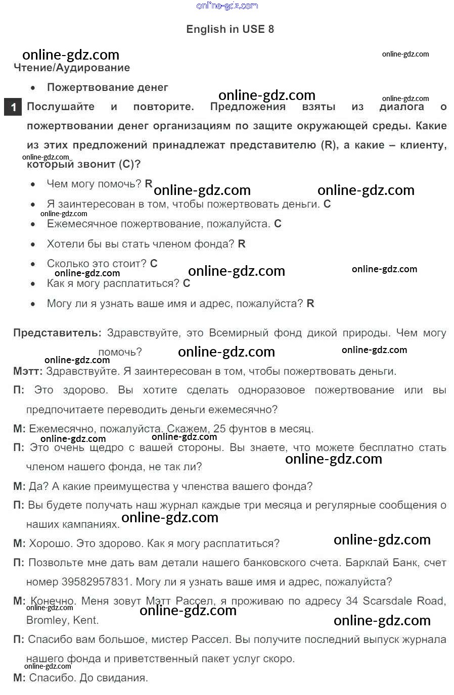 Готовые домашние задания по Английскому языку за 7 класс Учебник Ваулина, Дули Spotlight 2019 - English in use Модуль 8 2