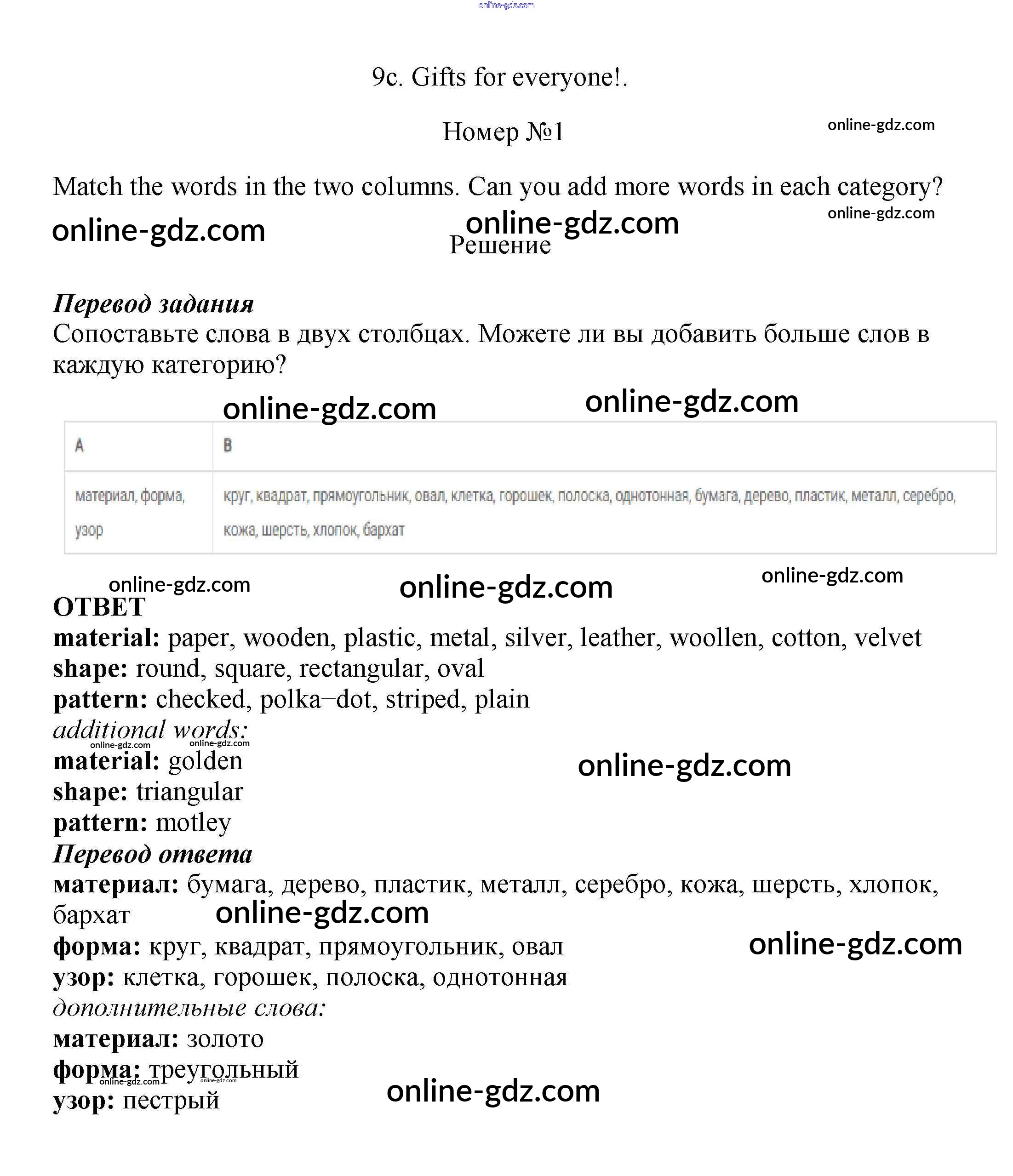 Готовые домашние задания по Английскому языку за 7 класс Учебник Ваулина, Дули Spotlight 2019 - Часть 9c Модуль 9 1