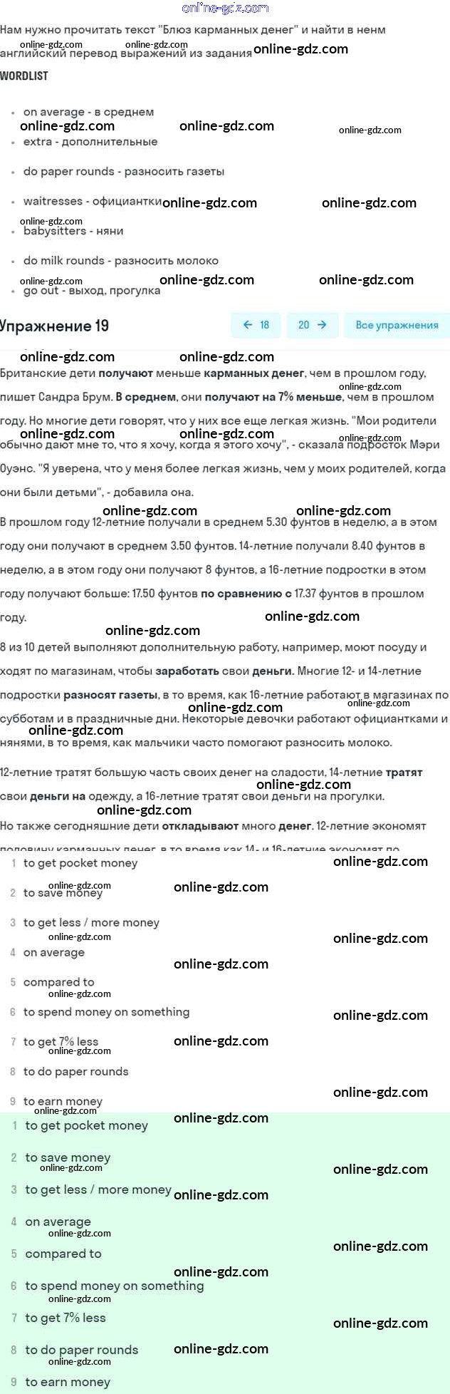 Готовые домашние задания по Английскому языку за 7 класс Учебник Вербицкая, Гаярделли Forward 2017 - Unit 7. Pocket money Часть 1 19