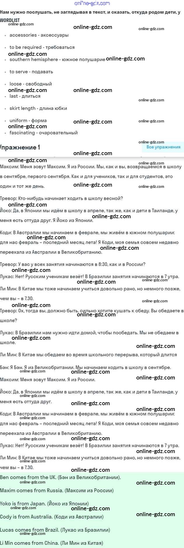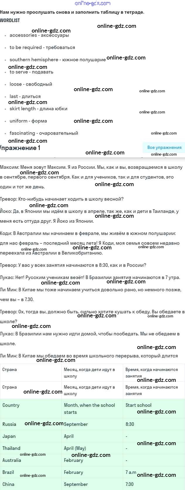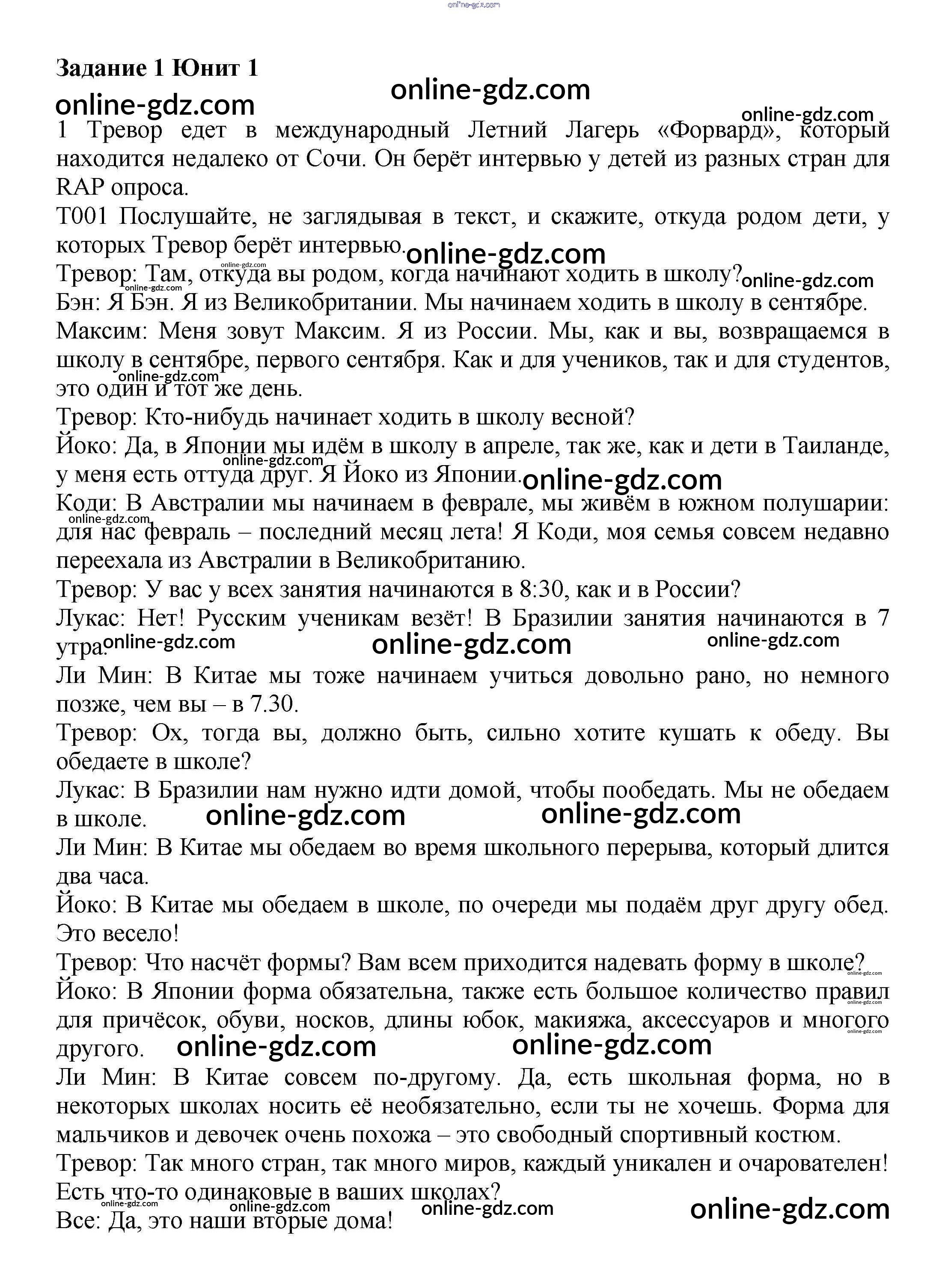 Готовые домашние задания по Английскому языку за 7 класс Учебник Вербицкая, Гаярделли Forward 2017 - Unit 1. Comparing schools in different countries Часть 1 1