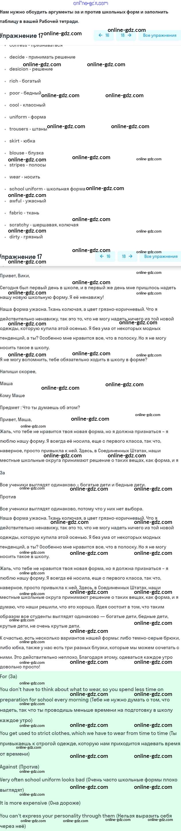 Готовые домашние задания по Английскому языку за 7 класс Учебник Вербицкая, Гаярделли Forward 2017 - Unit 1. Comparing schools in different countries Часть 1 17