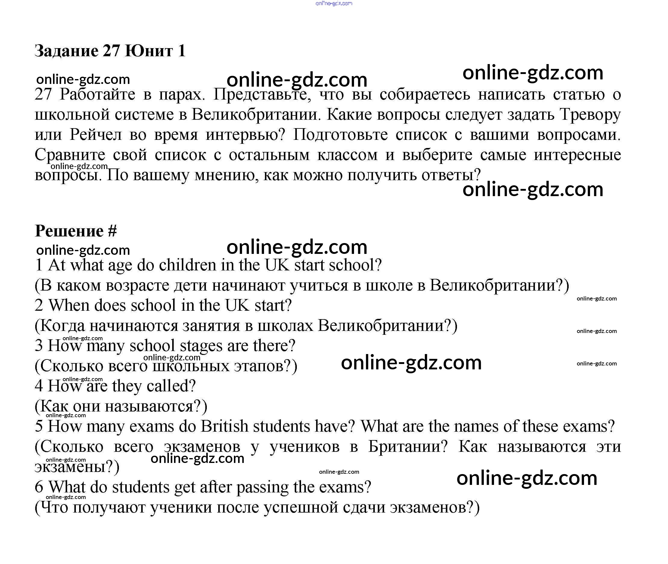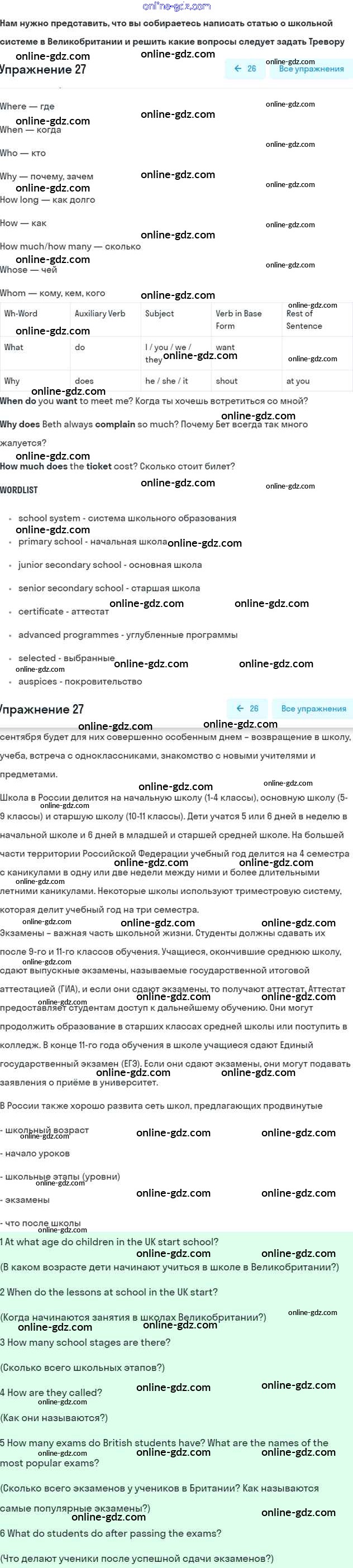 Готовые домашние задания по Английскому языку за 7 класс Учебник Вербицкая, Гаярделли Forward 2017 - Unit 1. Comparing schools in different countries Часть 1 27