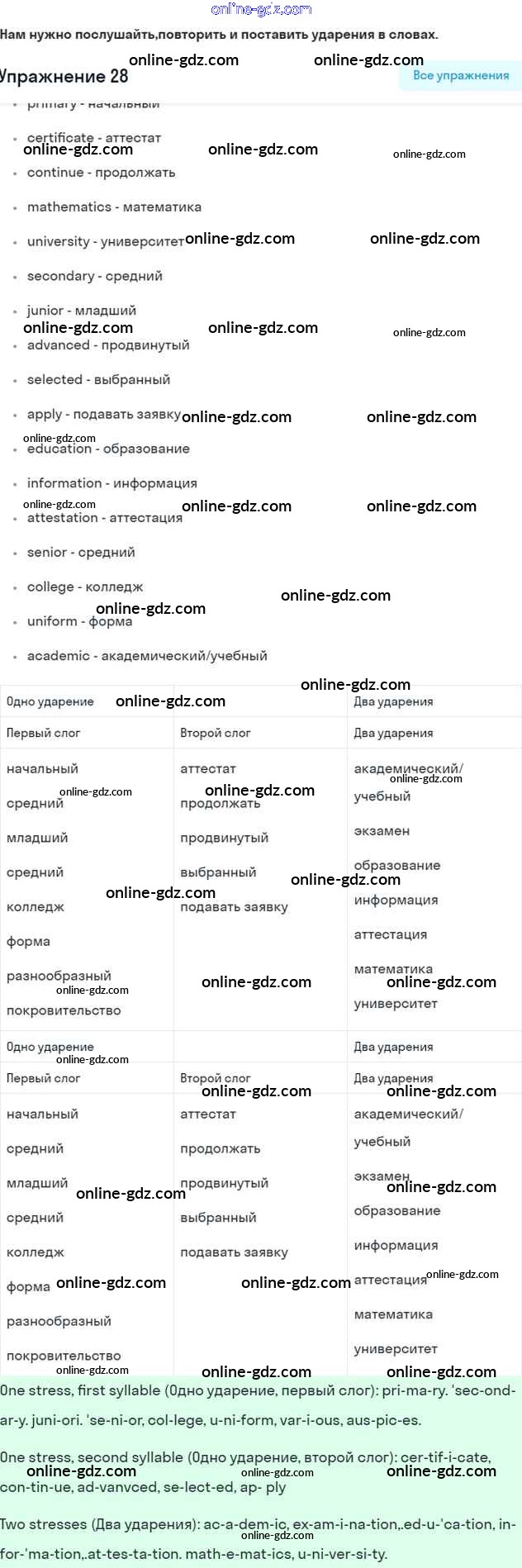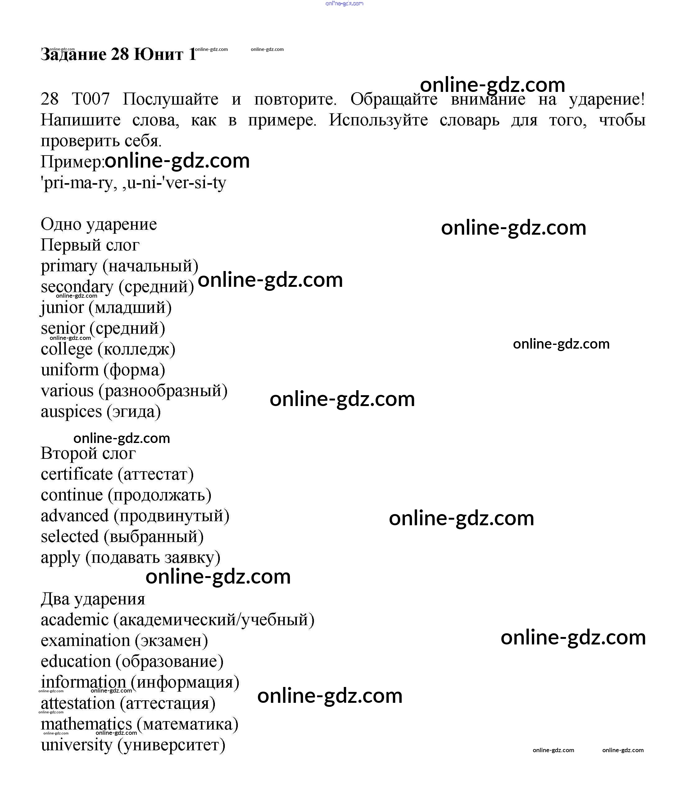 Готовые домашние задания по Английскому языку за 7 класс Учебник Вербицкая, Гаярделли Forward 2017 - Unit 1. Comparing schools in different countries Часть 1 28