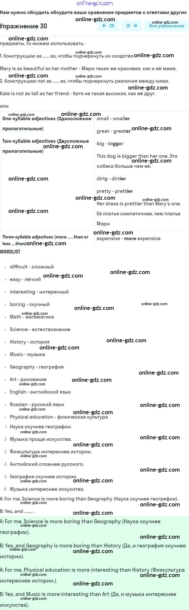 Готовые домашние задания по Английскому языку за 7 класс Учебник Вербицкая, Гаярделли Forward 2017 - Unit 1. Comparing schools in different countries Часть 1 30