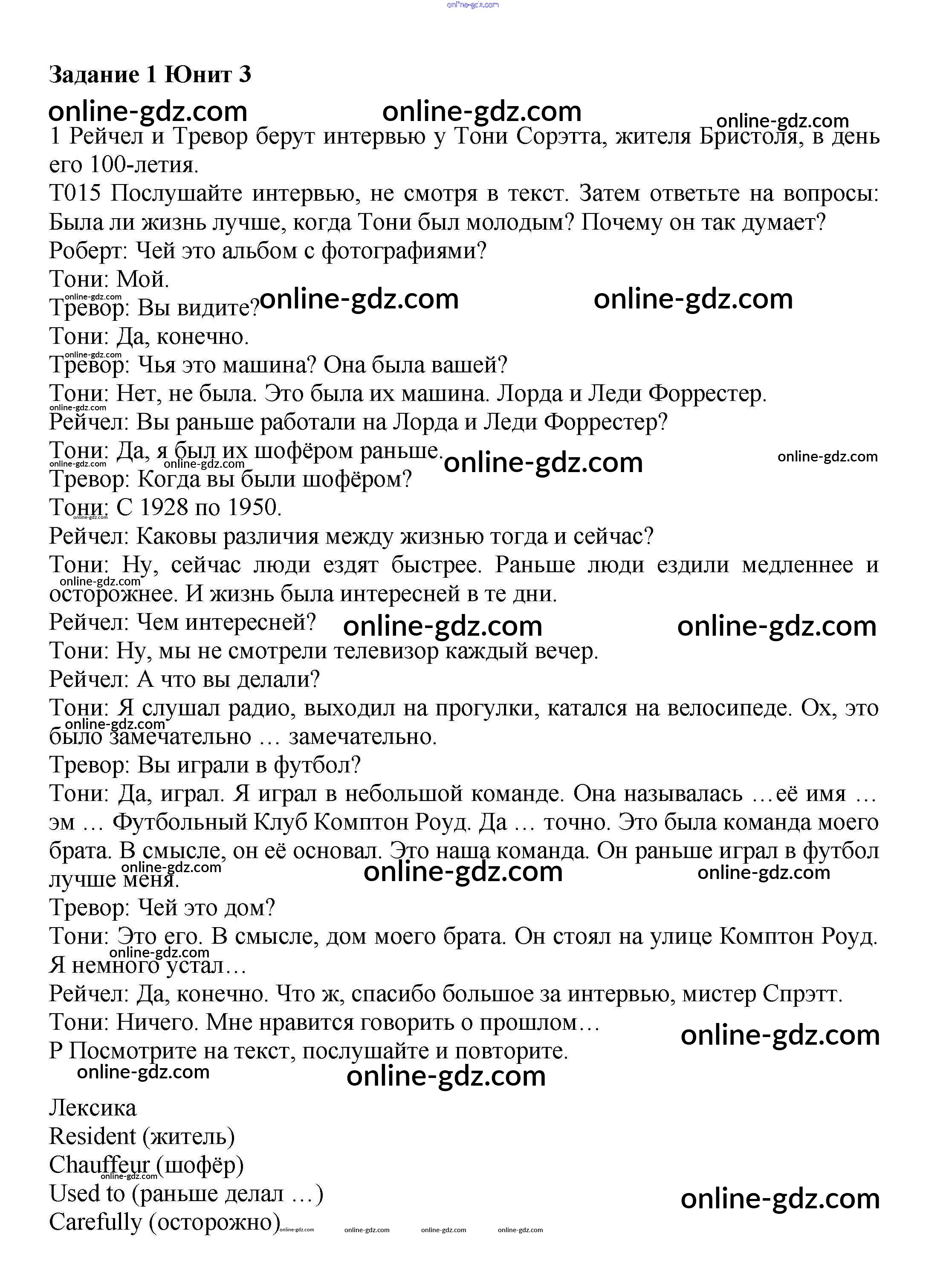 Готовые домашние задания по Английскому языку за 7 класс Учебник Вербицкая, Гаярделли Forward 2017 - Unit 3. Talking about old times Часть 1 1