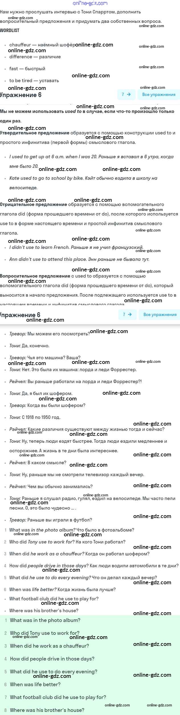 Готовые домашние задания по Английскому языку за 7 класс Учебник Вербицкая, Гаярделли Forward 2017 - Unit 3. Talking about old times Часть 1 6