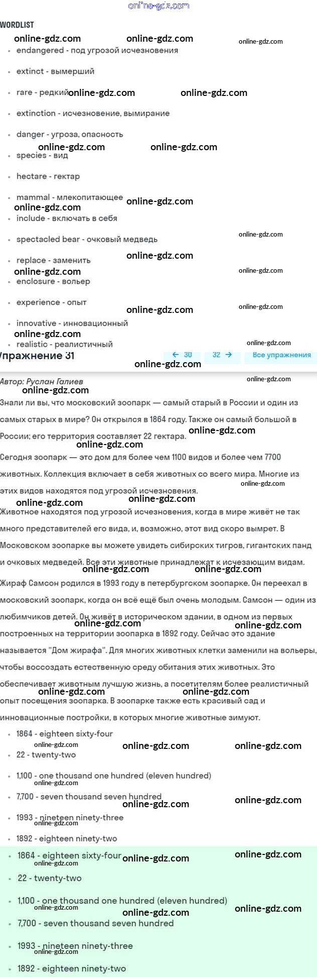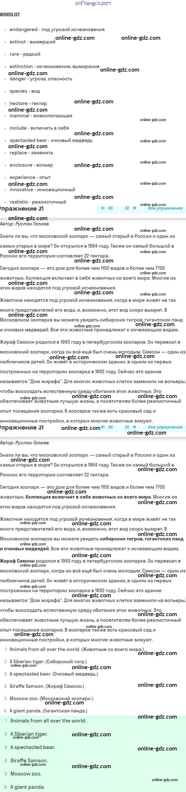Готовые домашние задания по Английскому языку за 7 класс Учебник Вербицкая, Гаярделли Forward 2017 - Unit 4. Animal quiz Часть 1 31
