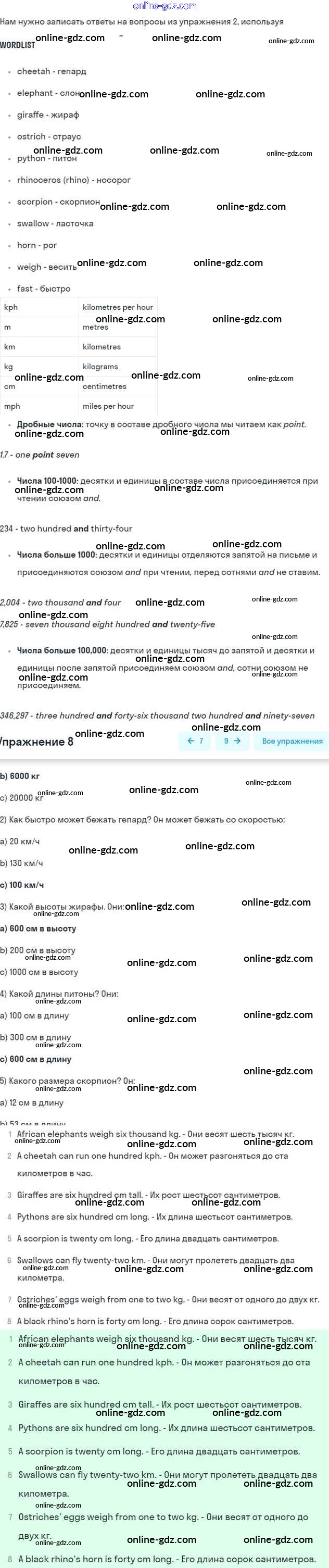 Готовые домашние задания по Английскому языку за 7 класс Учебник Вербицкая, Гаярделли Forward 2017 - Unit 4. Animal quiz Часть 1 8