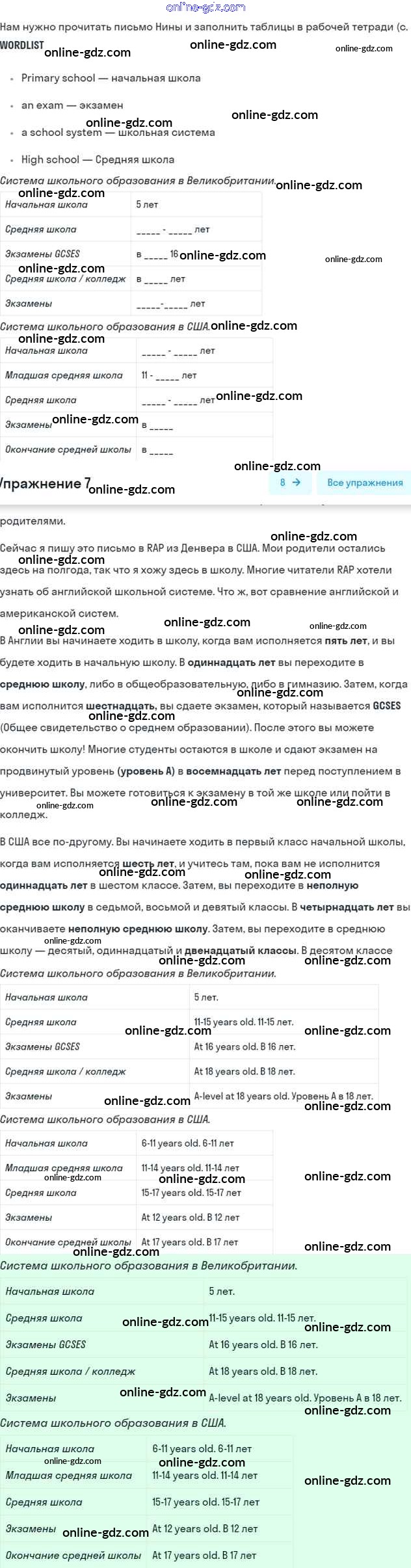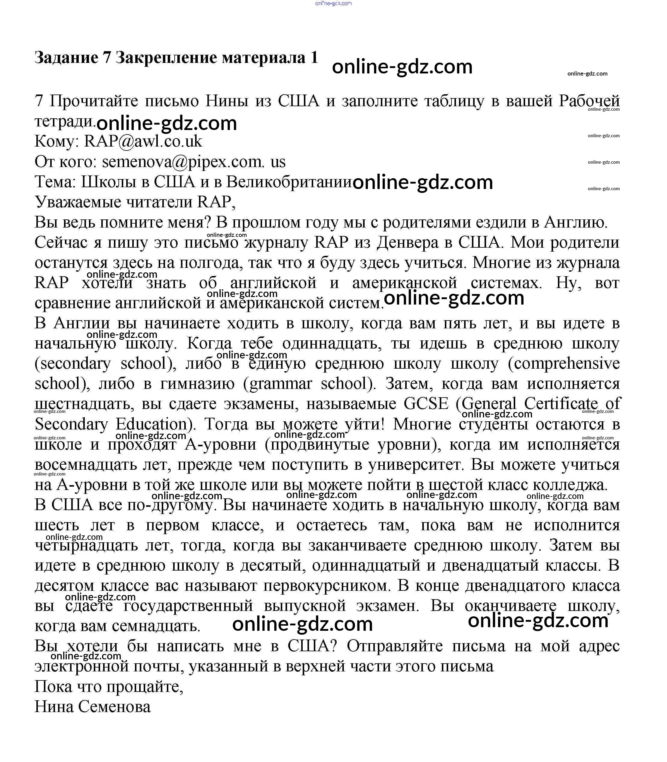 Готовые домашние задания по Английскому языку за 7 класс Учебник Вербицкая, Гаярделли Forward 2017 - Consolidation 1 Часть 1 7
