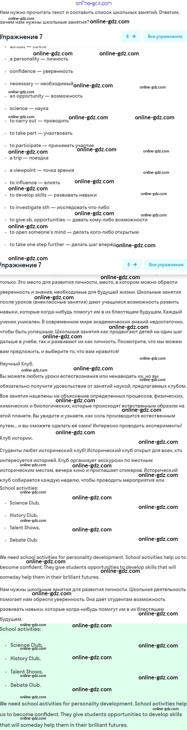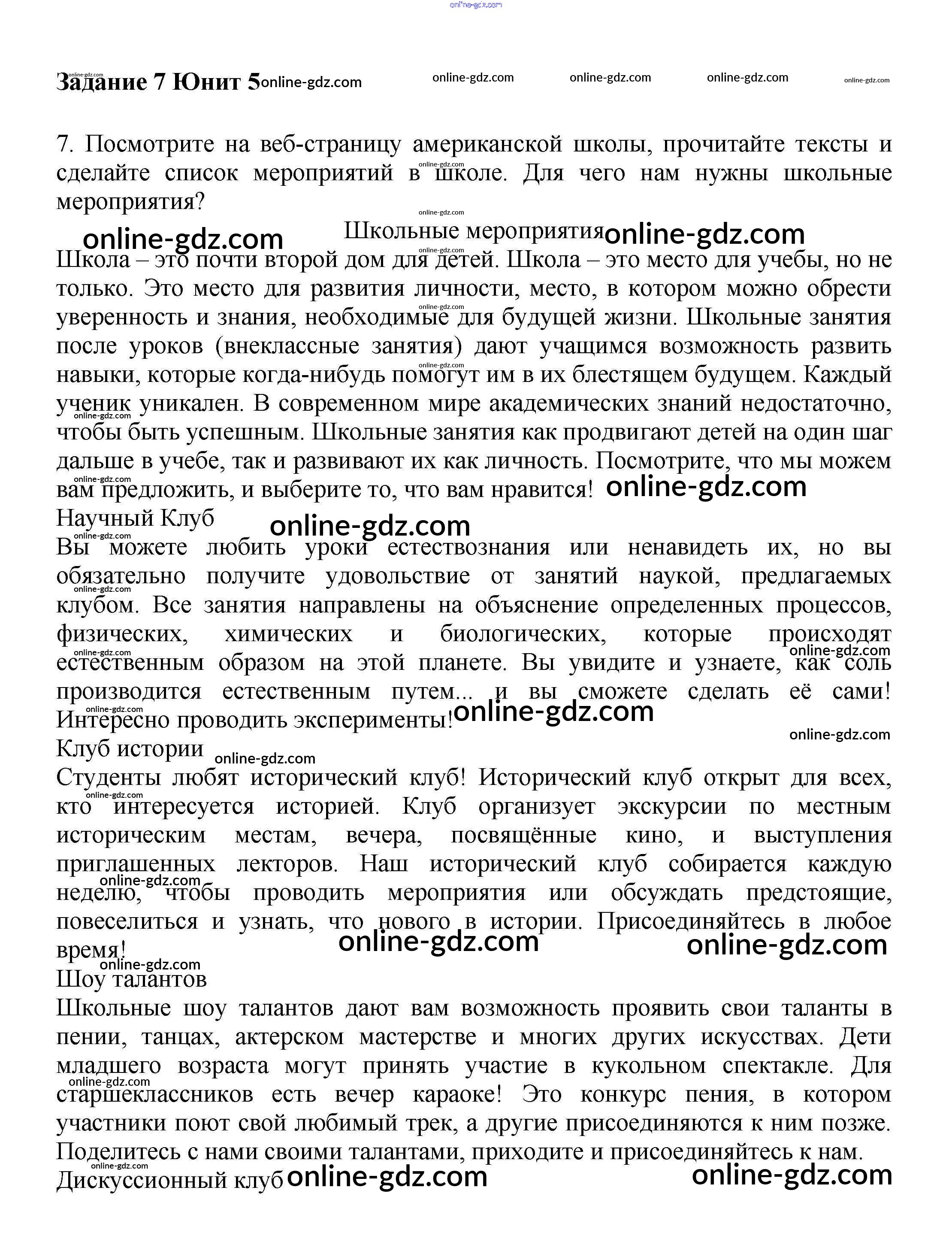 Готовые домашние задания по Английскому языку за 7 класс Учебник Вербицкая, Гаярделли Forward 2017 - Unit 5. School activities Часть 1 7