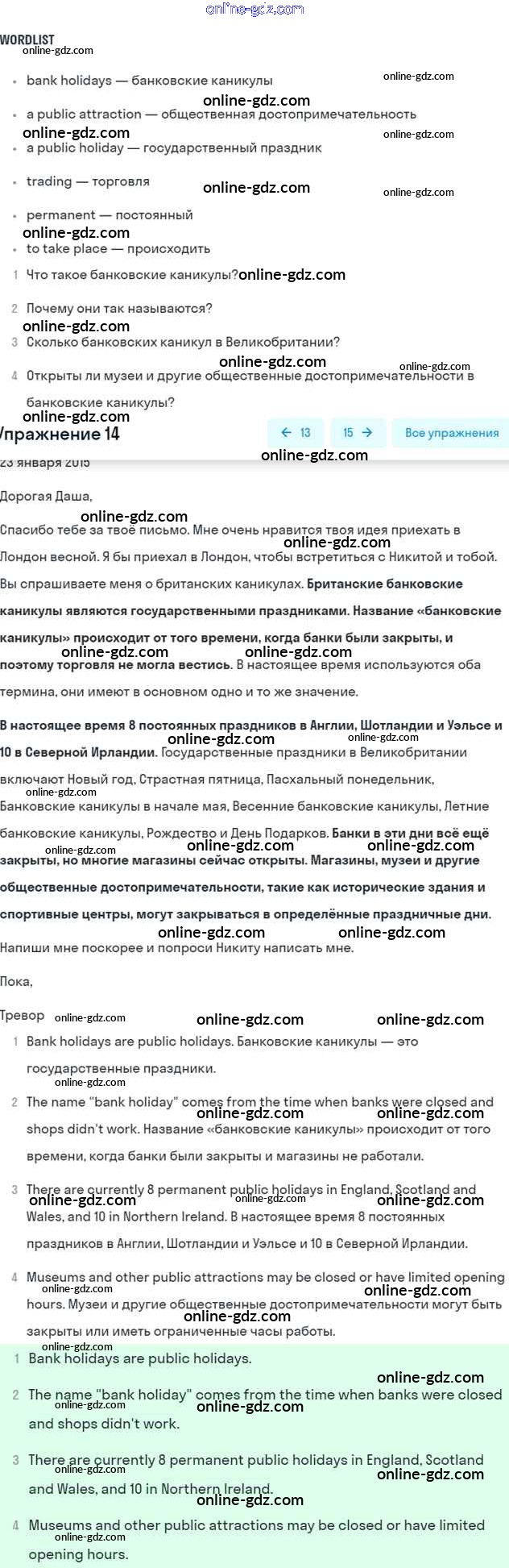 Готовые домашние задания по Английскому языку за 7 класс Учебник Вербицкая, Гаярделли Forward 2017 - Unit 9. Free time Часть 2 14
