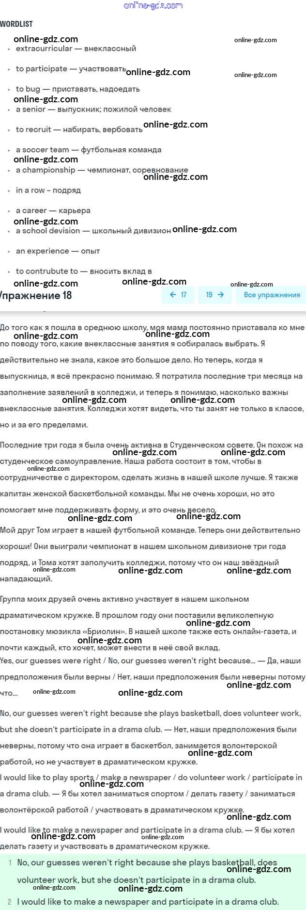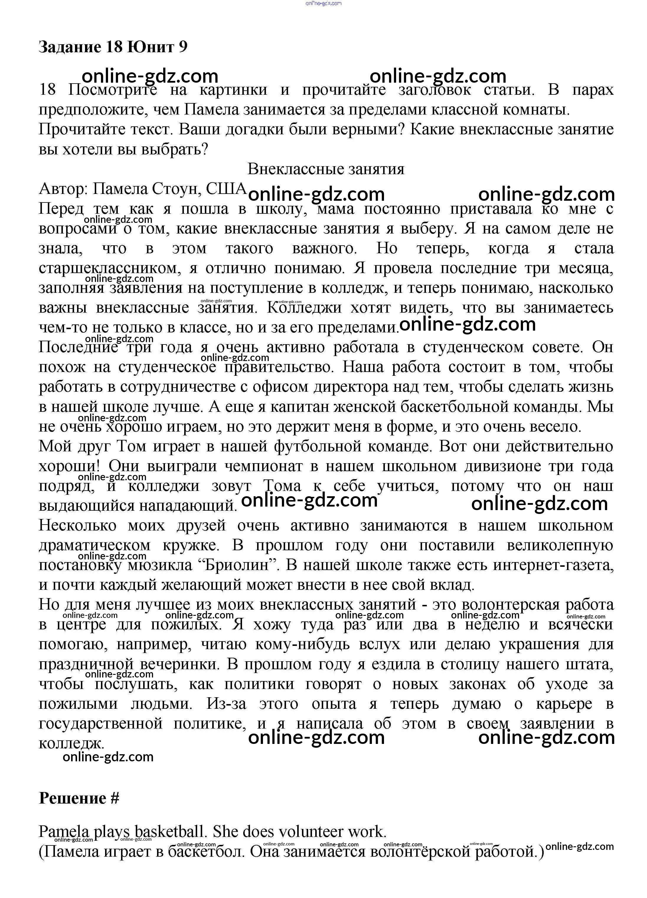 Готовые домашние задания по Английскому языку за 7 класс Учебник Вербицкая, Гаярделли Forward 2017 - Unit 9. Free time Часть 2 18