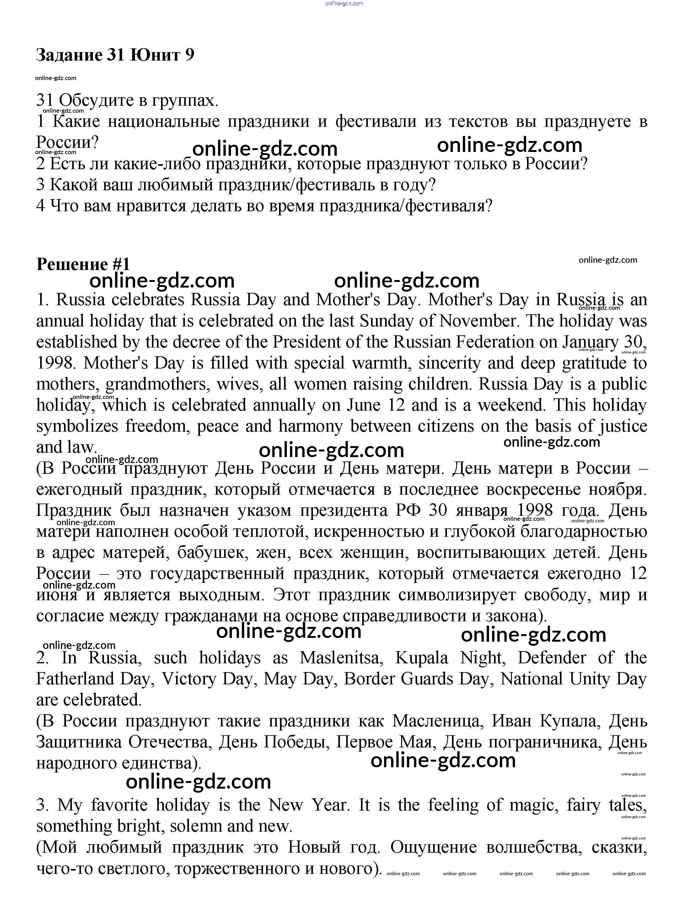 Готовые домашние задания по Английскому языку за 7 класс Учебник Вербицкая, Гаярделли Forward 2017 - Unit 9. Free time Часть 2 31