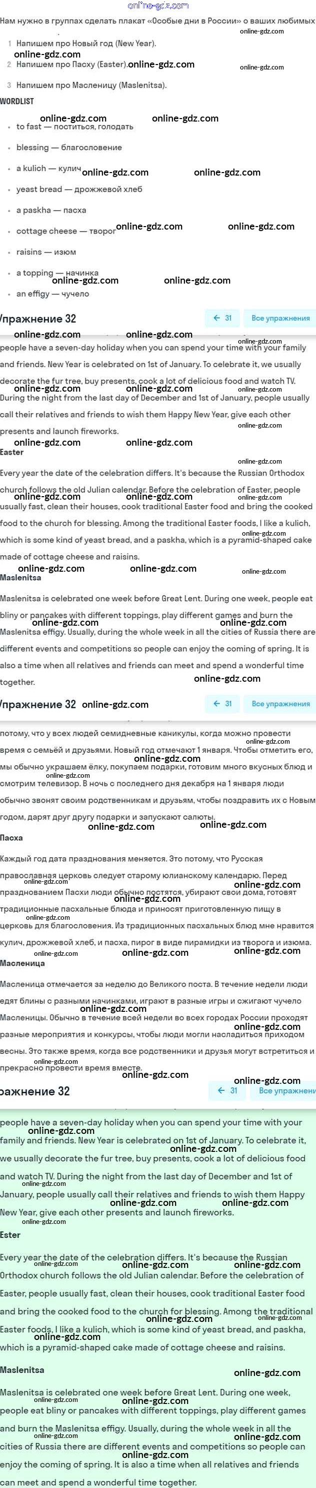 Готовые домашние задания по Английскому языку за 7 класс Учебник Вербицкая, Гаярделли Forward 2017 - Unit 9. Free time Часть 2 32
