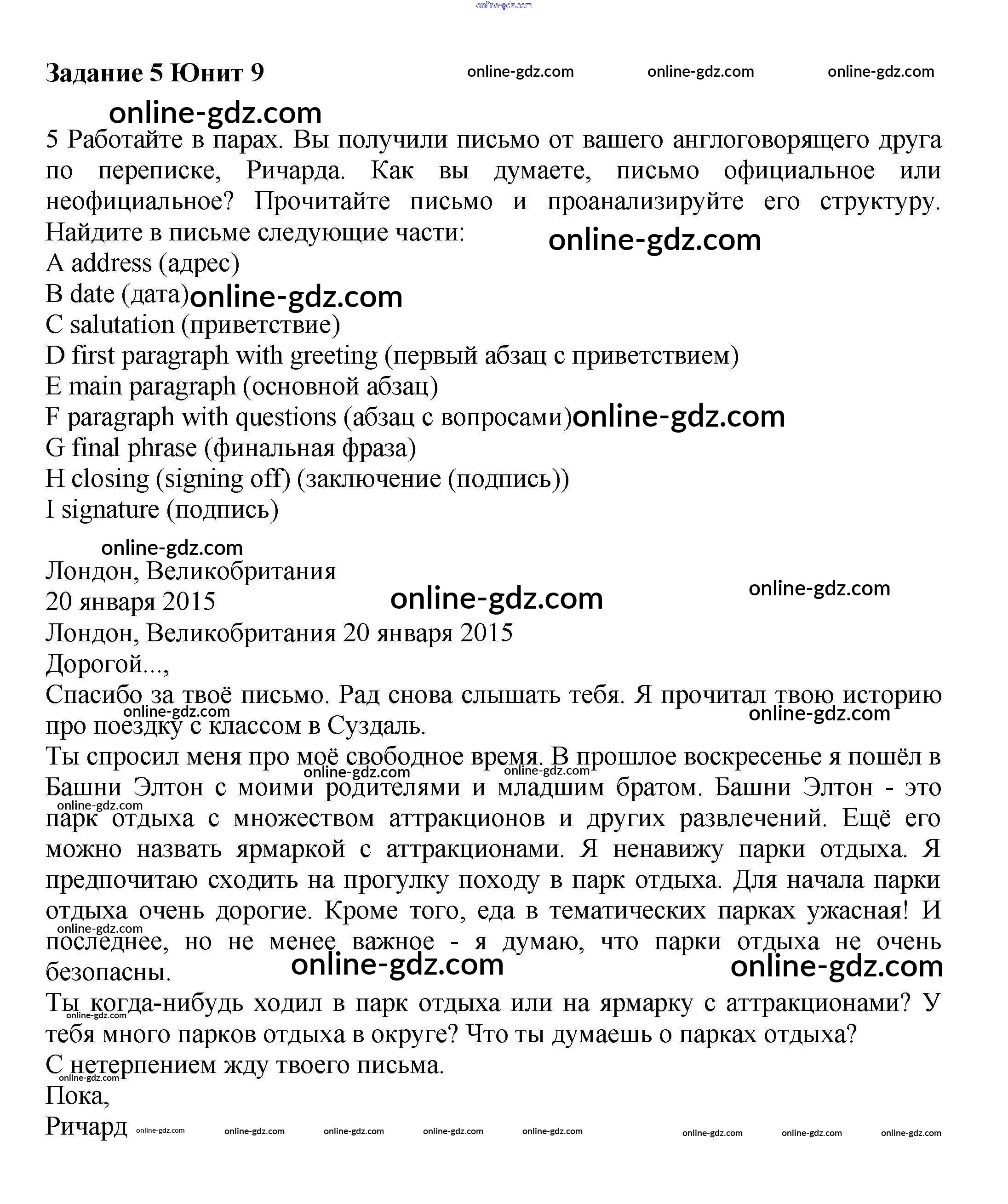 Готовые домашние задания по Английскому языку за 7 класс Учебник Вербицкая, Гаярделли Forward 2017 - Unit 9. Free time Часть 2 5