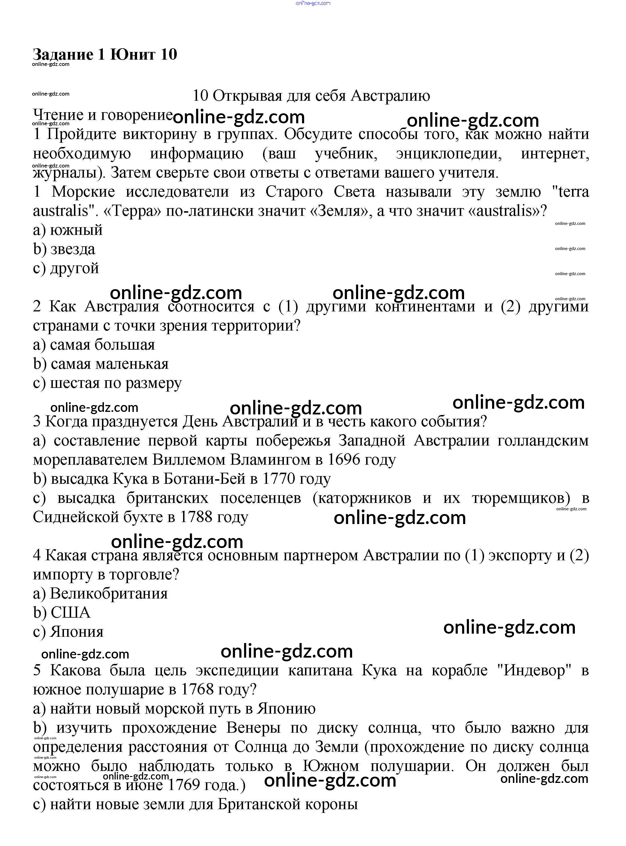 Готовые домашние задания по Английскому языку за 7 класс Учебник Вербицкая, Гаярделли Forward 2017 - Unit 10. Discovering Australia Часть 2 1