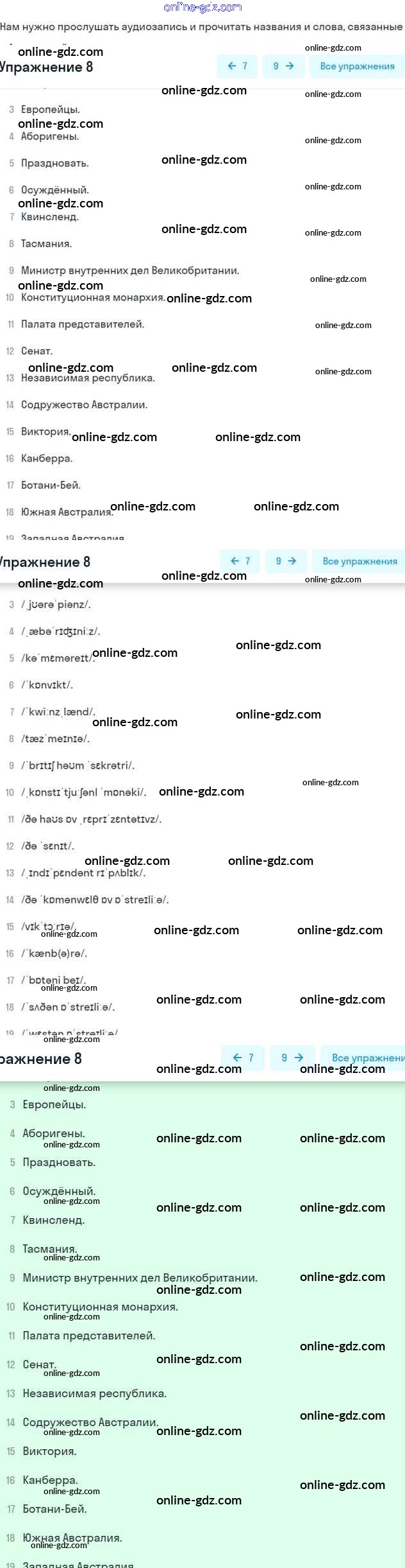 Готовые домашние задания по Английскому языку за 7 класс Учебник Вербицкая, Гаярделли Forward 2017 - Unit 10. Discovering Australia Часть 2 8