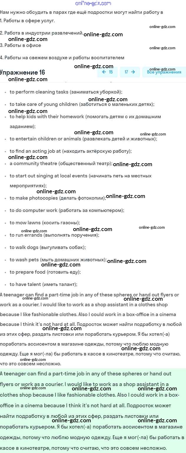 Готовые домашние задания по Английскому языку за 7 класс Учебник Вербицкая, Гаярделли Forward 2017 - Unit 11. Work experience Часть 2 16