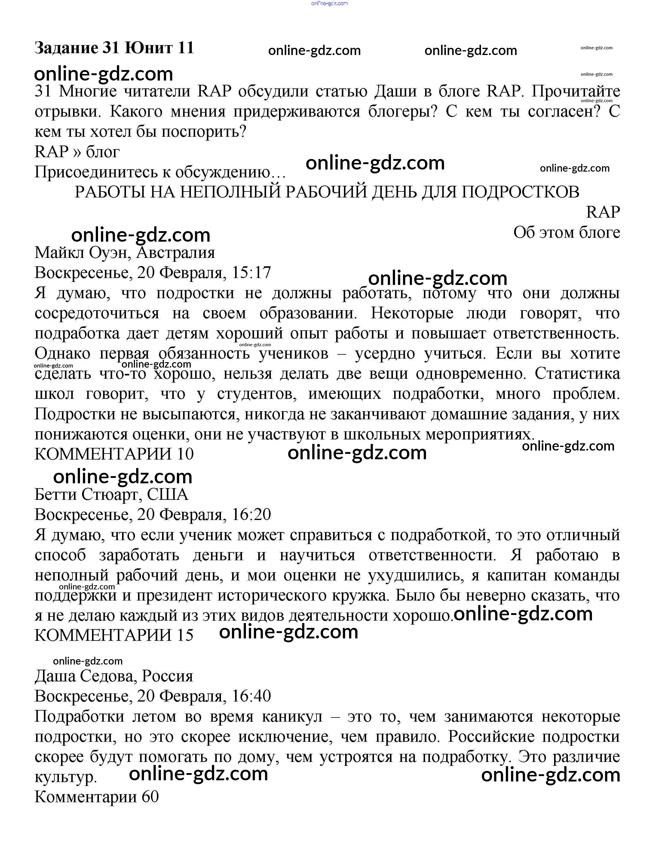 Готовые домашние задания по Английскому языку за 7 класс Учебник Вербицкая, Гаярделли Forward 2017 - Unit 11. Work experience Часть 2 31
