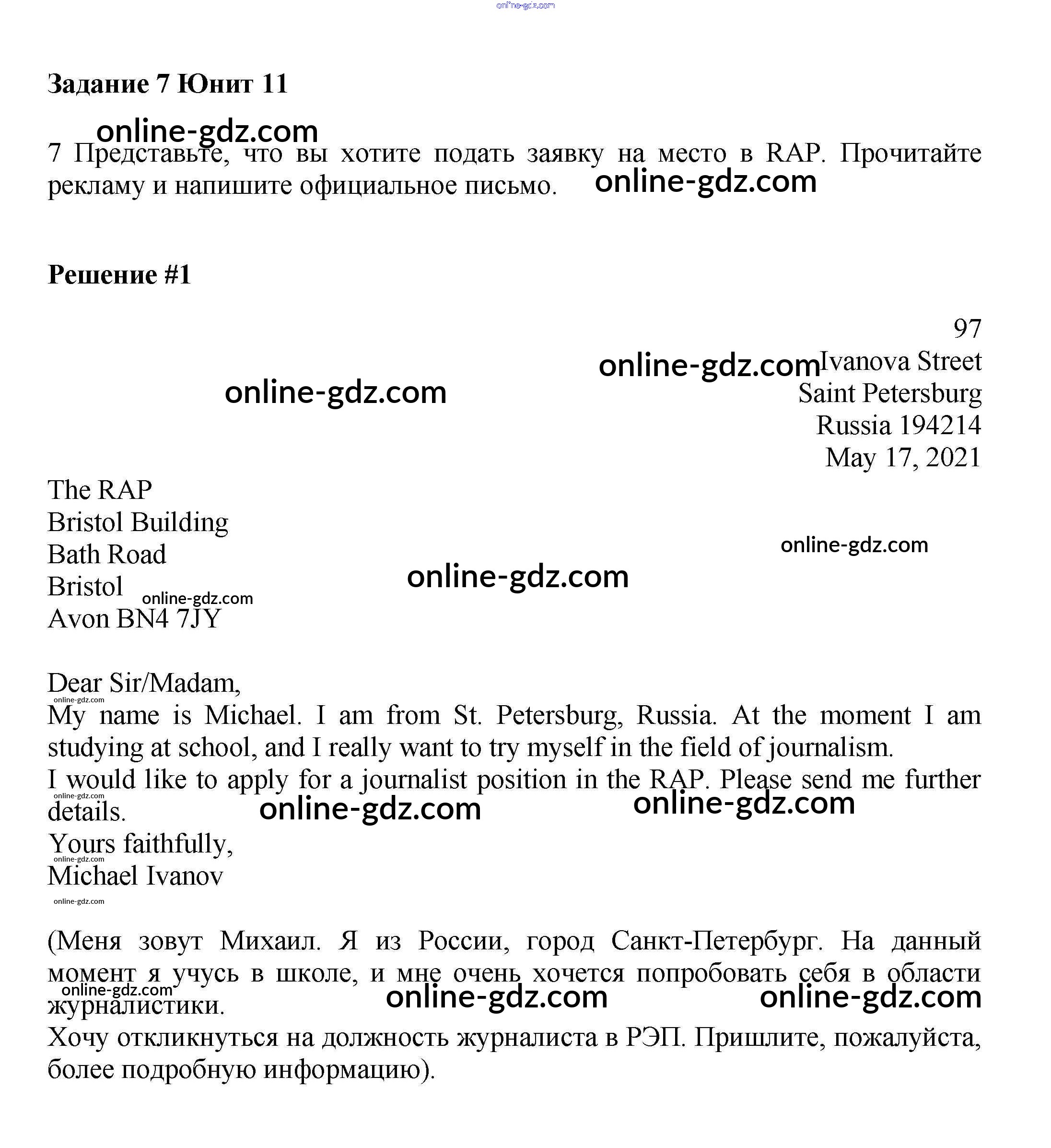 Готовые домашние задания по Английскому языку за 7 класс Учебник Вербицкая, Гаярделли Forward 2017 - Unit 11. Work experience Часть 2 7