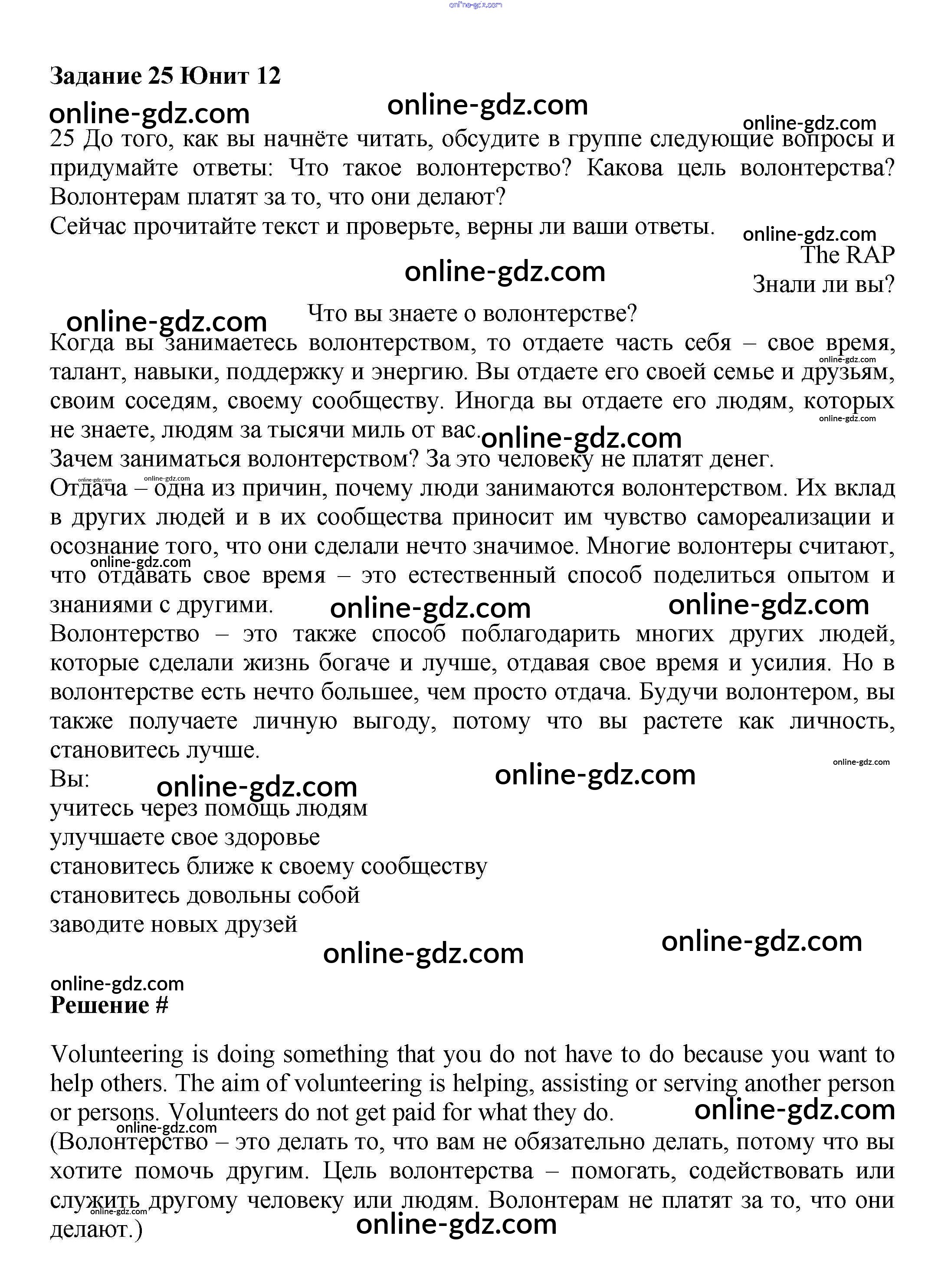 Готовые домашние задания по Английскому языку за 7 класс Учебник Вербицкая, Гаярделли Forward 2017 - Unit 12. Social issues Часть 2 25