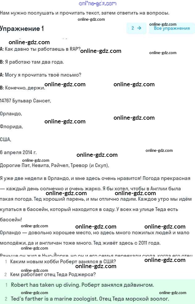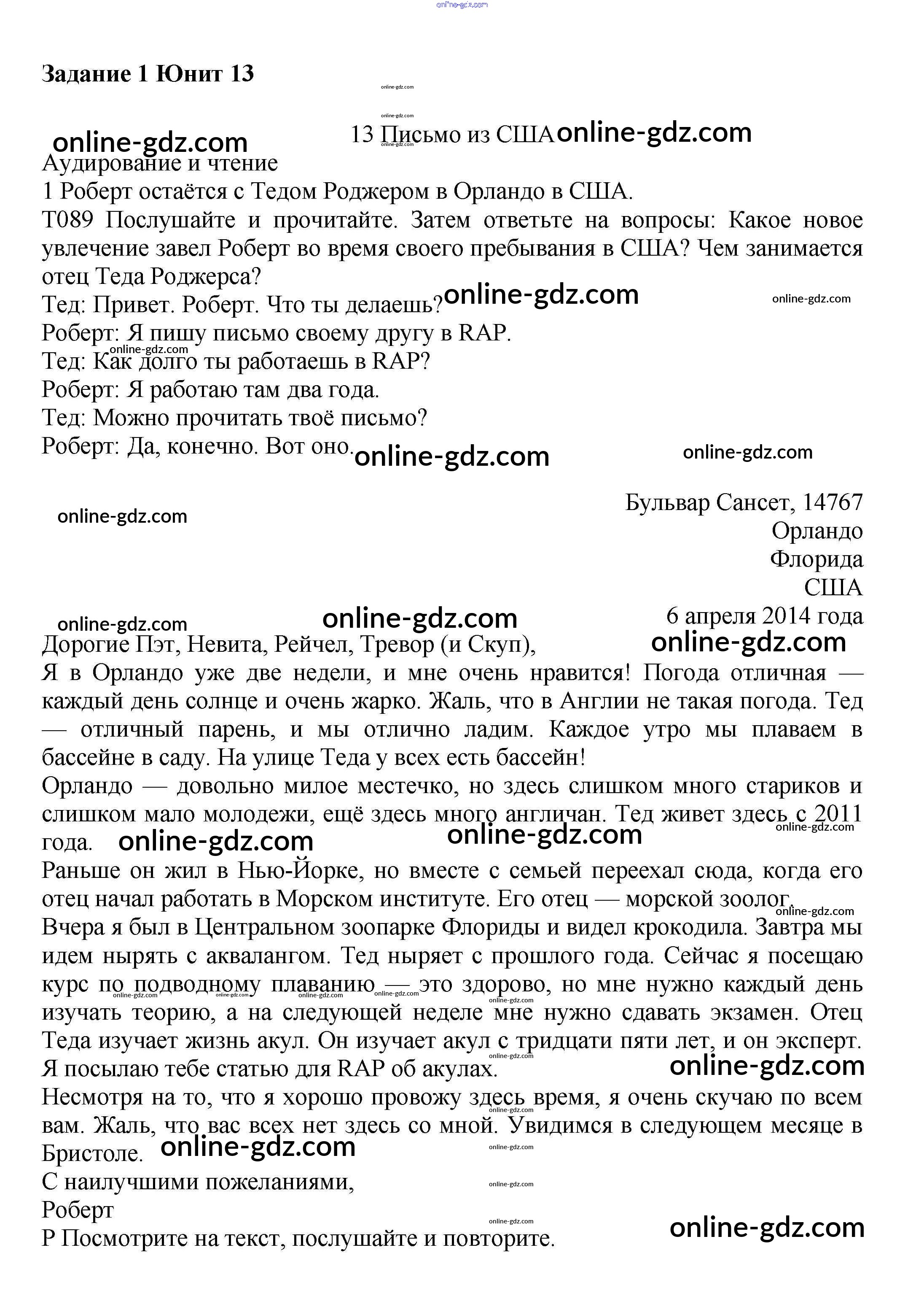 Готовые домашние задания по Английскому языку за 7 класс Учебник Вербицкая, Гаярделли Forward 2017 - Unit 13. A letter from the USA Часть 2 1