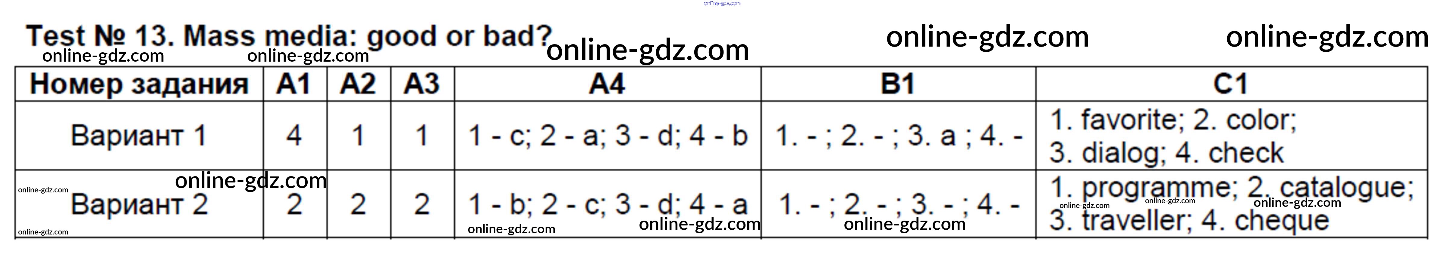 Готовые домашние задания по Английскому языку за 8 класс Контрольно-измерительные материалы (КИМ) Лысакова 2018 - Тесты Test №13. Mass media - good or bad