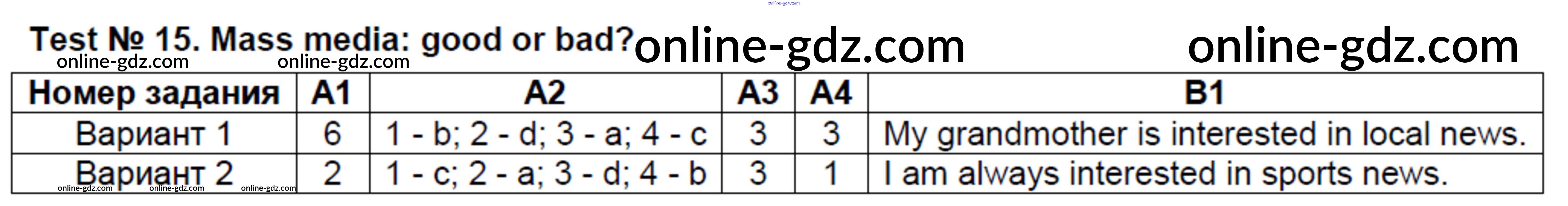 Готовые домашние задания по Английскому языку за 8 класс Контрольно-измерительные материалы (КИМ) Лысакова 2018 - Тесты Test №15. Mass media - good or bad