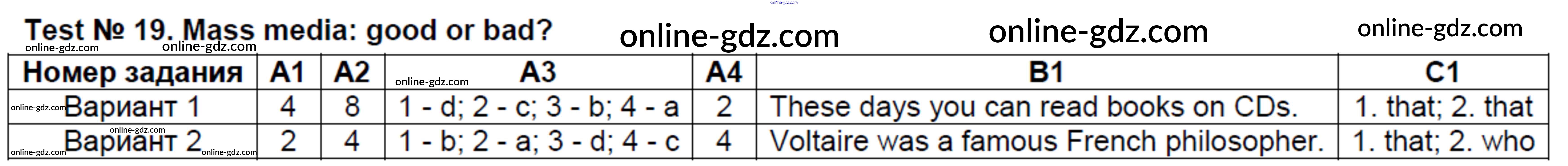 Готовые домашние задания по Английскому языку за 8 класс Контрольно-измерительные материалы (КИМ) Лысакова 2018 - Тесты Test №19. Mass media - good or bad