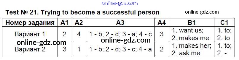 Готовые домашние задания по Английскому языку за 8 класс Контрольно-измерительные материалы (КИМ) Лысакова 2018 - Тесты Test №21. Trying to become a successful person