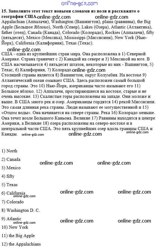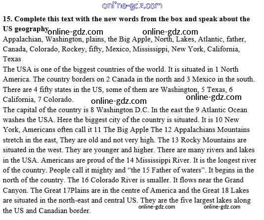 Готовые домашние задания по Английскому языку за 8 класс Рабочая тетрадь Афанасьева, Михеева Новый курс 2017 - Unit 1. Visiting the USA Тетрадь №1 15