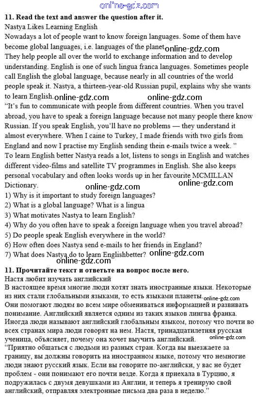 Готовые домашние задания по Английскому языку за 8 класс Рабочая тетрадь Афанасьева, Михеева Новый курс 2017 - Unit 2. English - a Global Language Тетрадь №1 11