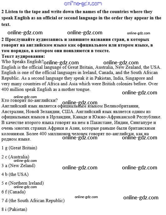 Готовые домашние задания по Английскому языку за 8 класс Рабочая тетрадь Афанасьева, Михеева Новый курс 2017 - Unit 2. English - a Global Language Тетрадь №1 2