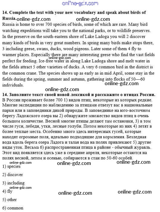 Готовые домашние задания по Английскому языку за 8 класс Рабочая тетрадь Афанасьева, Михеева Новый курс 2017 - Unit 3. Living Things around Us Тетрадь №1 14