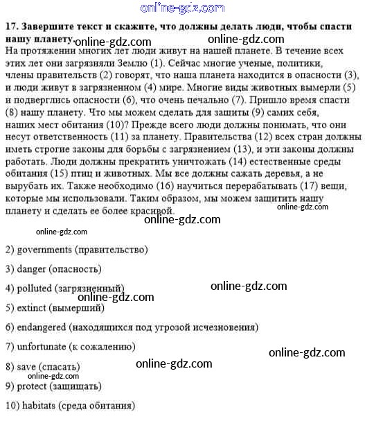 Готовые домашние задания по Английскому языку за 8 класс Рабочая тетрадь Афанасьева, Михеева Новый курс 2017 - Unit 4. The ABC of Ecology Тетрадь №2 17